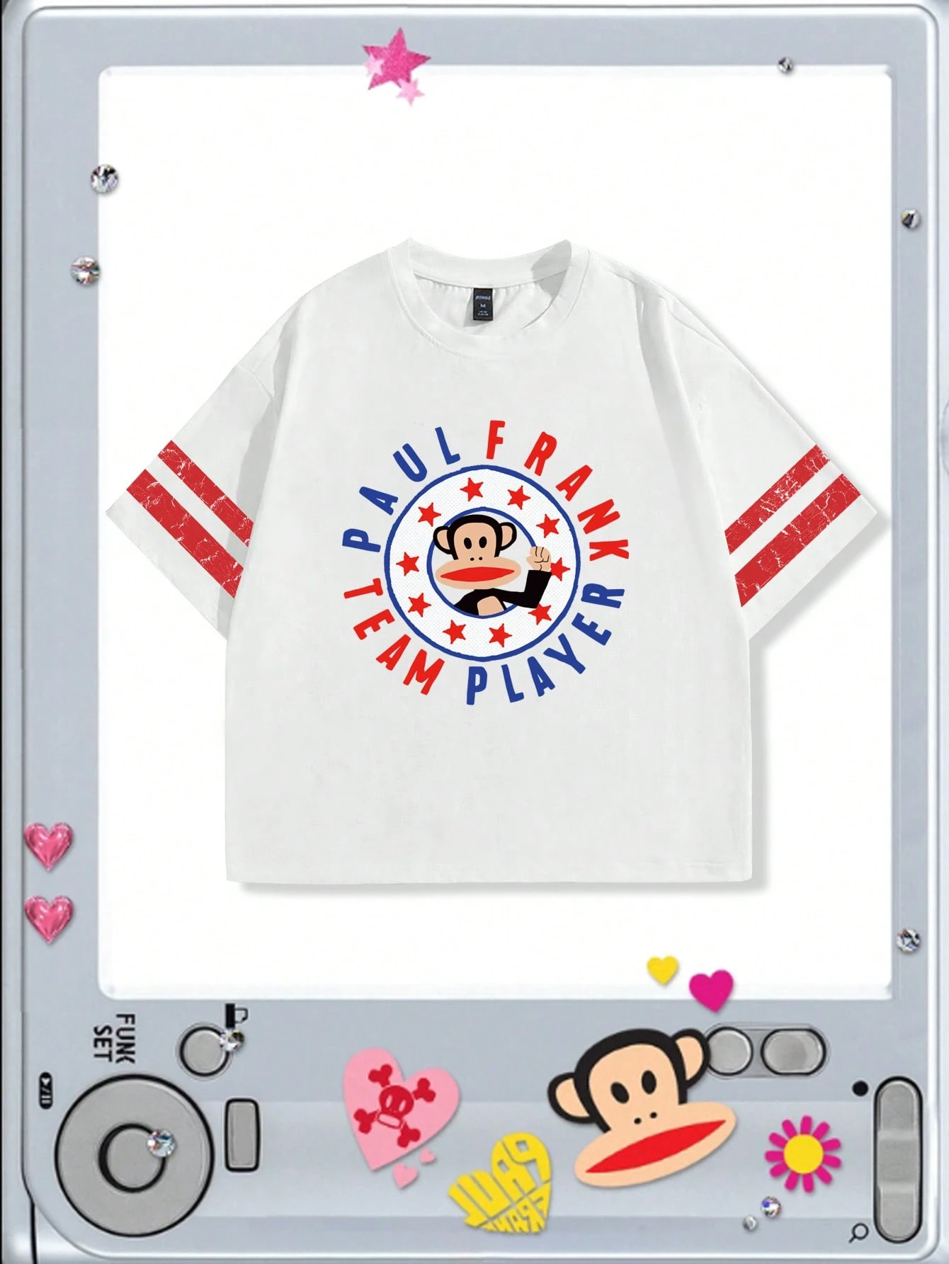 Paul Frank X ROMWE T-shirt estiva da uomo a maniche corte con scollo rotondo, stampa con lettera e scimmia