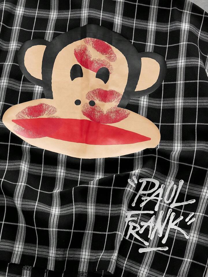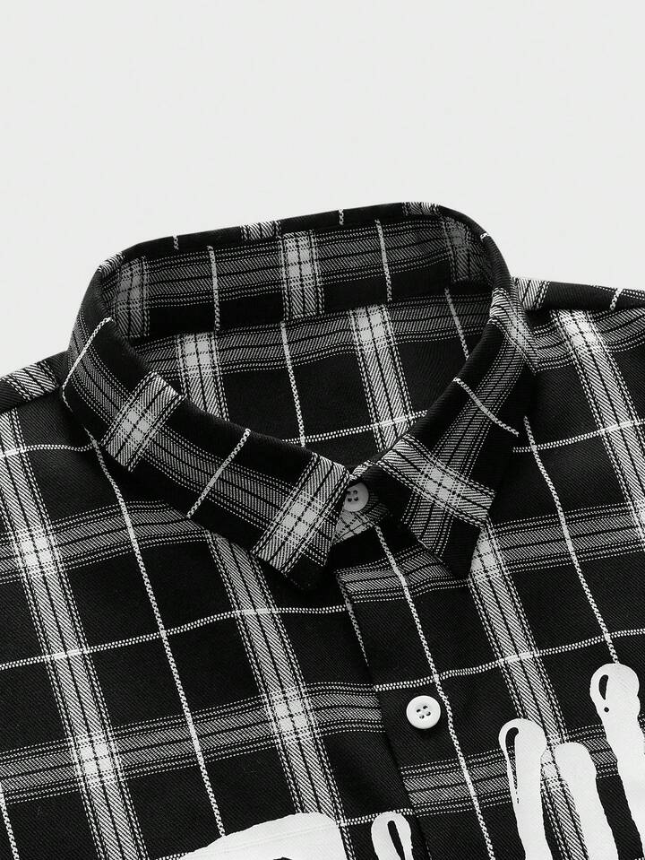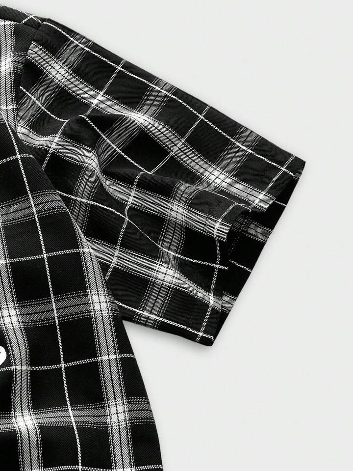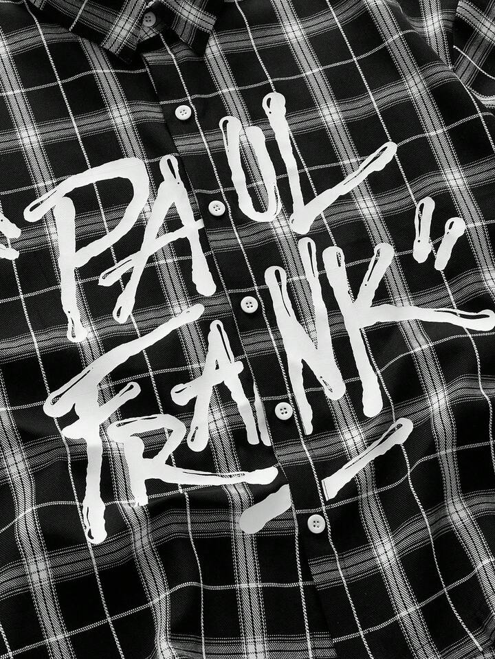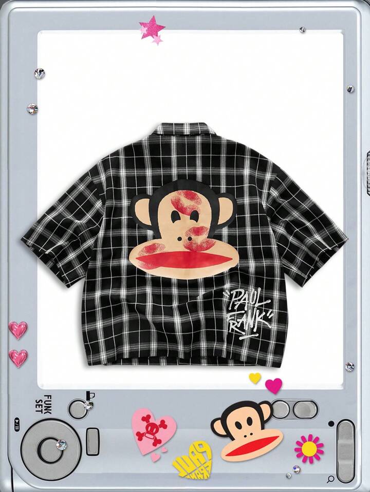 Paul Frank X ROMWE Camicia estiva da uomo a maniche corte con stampa a quadri e grafica con lettera, chiusura con bottoni