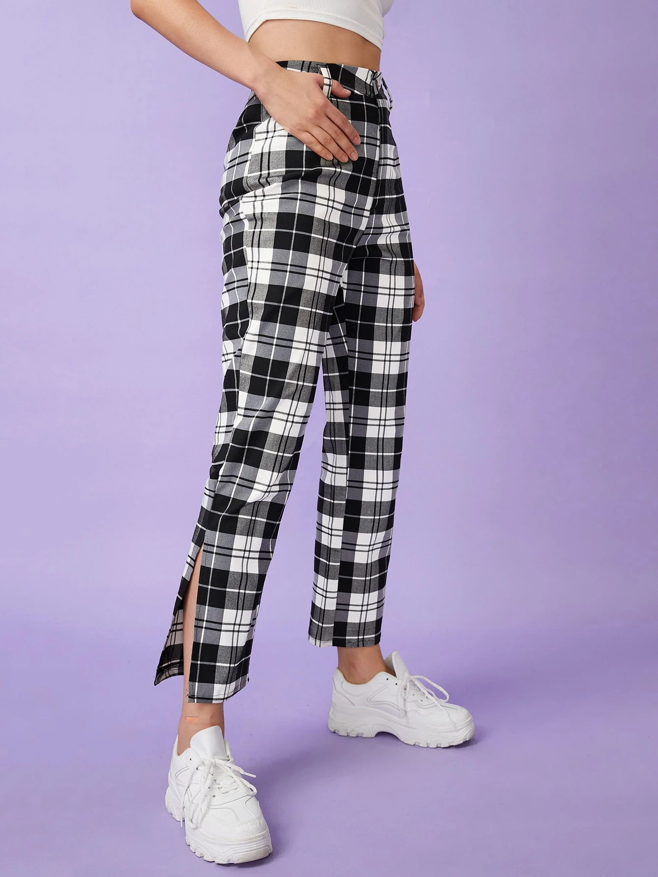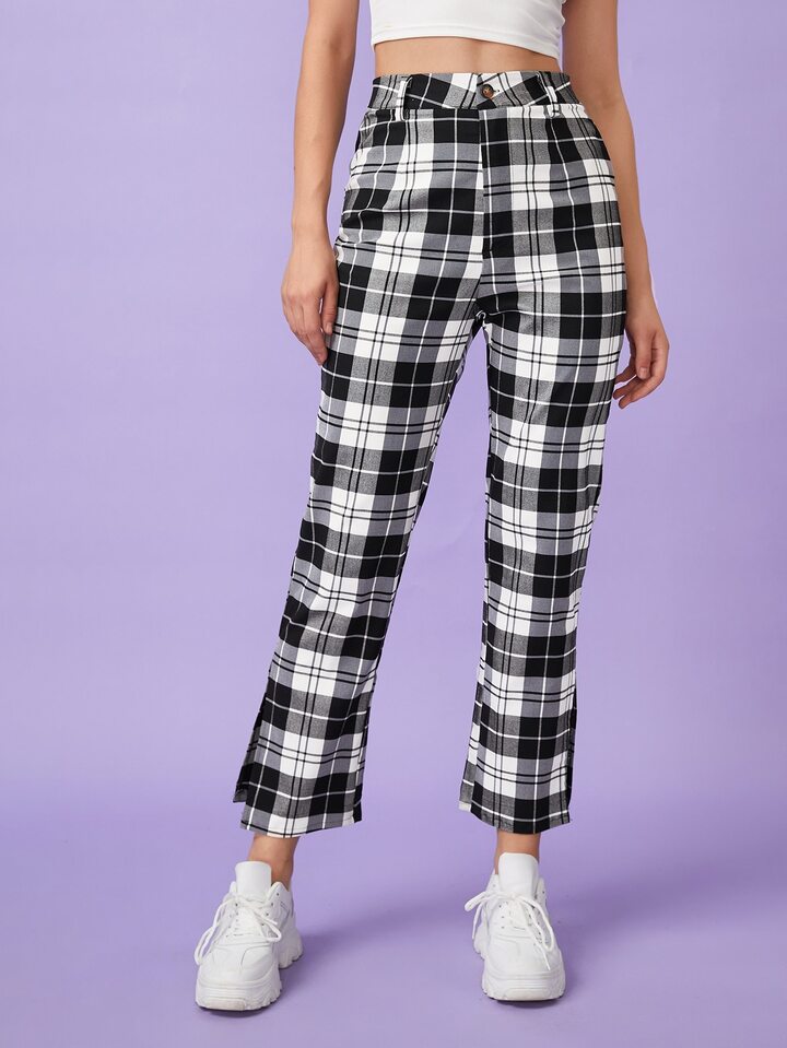Pantaloni a quadri con bottone