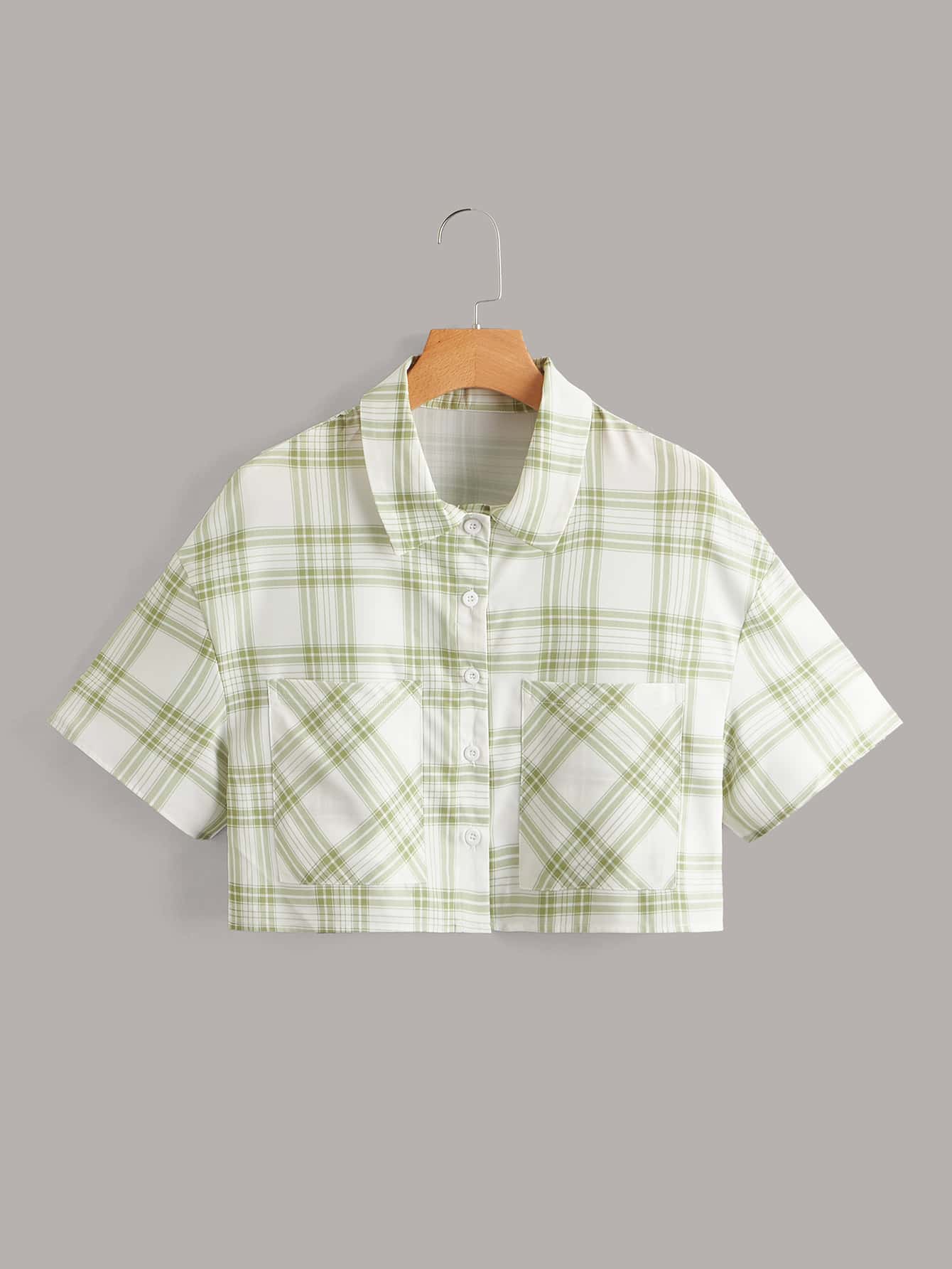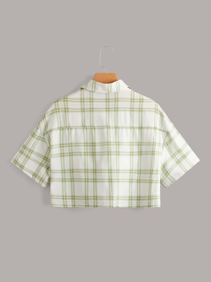 Camicia a quadri con bottone frontale tasca corto