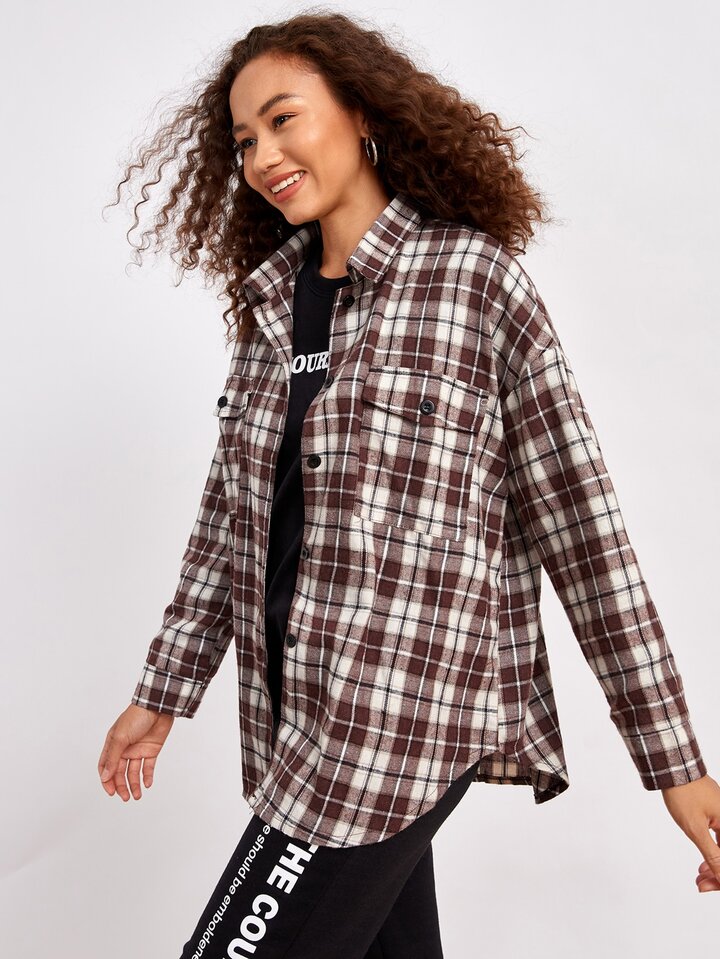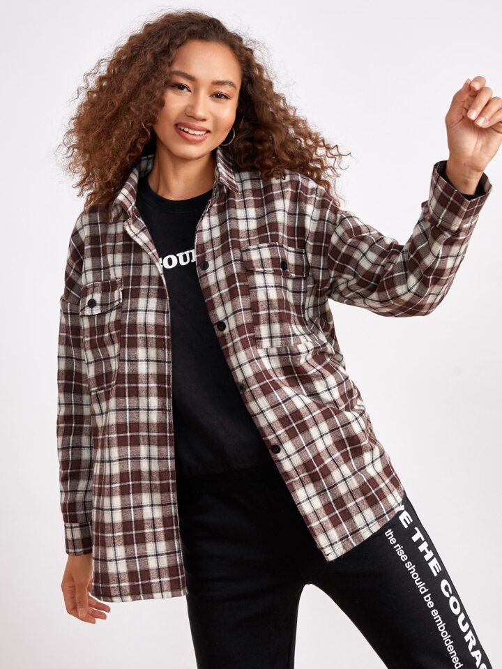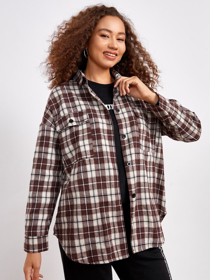 Camicia a quadri con bottone frontale tasca