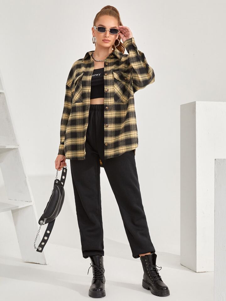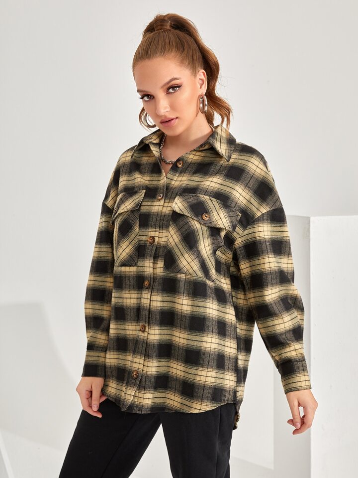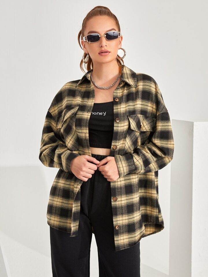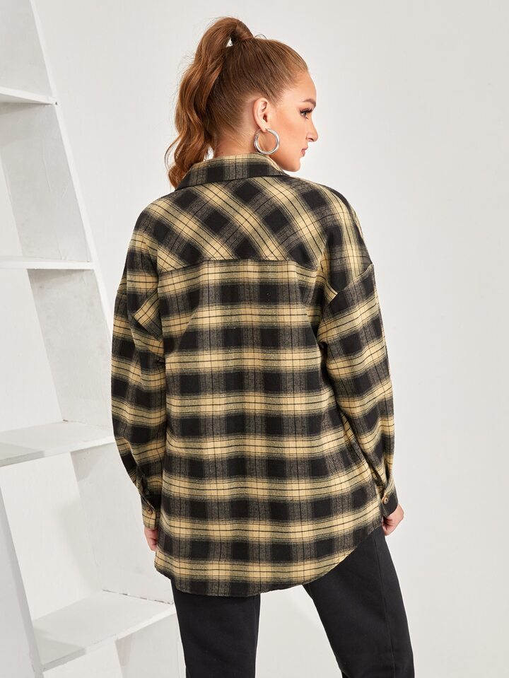 Camicetta con tasca con spalle cadenti a quadri
