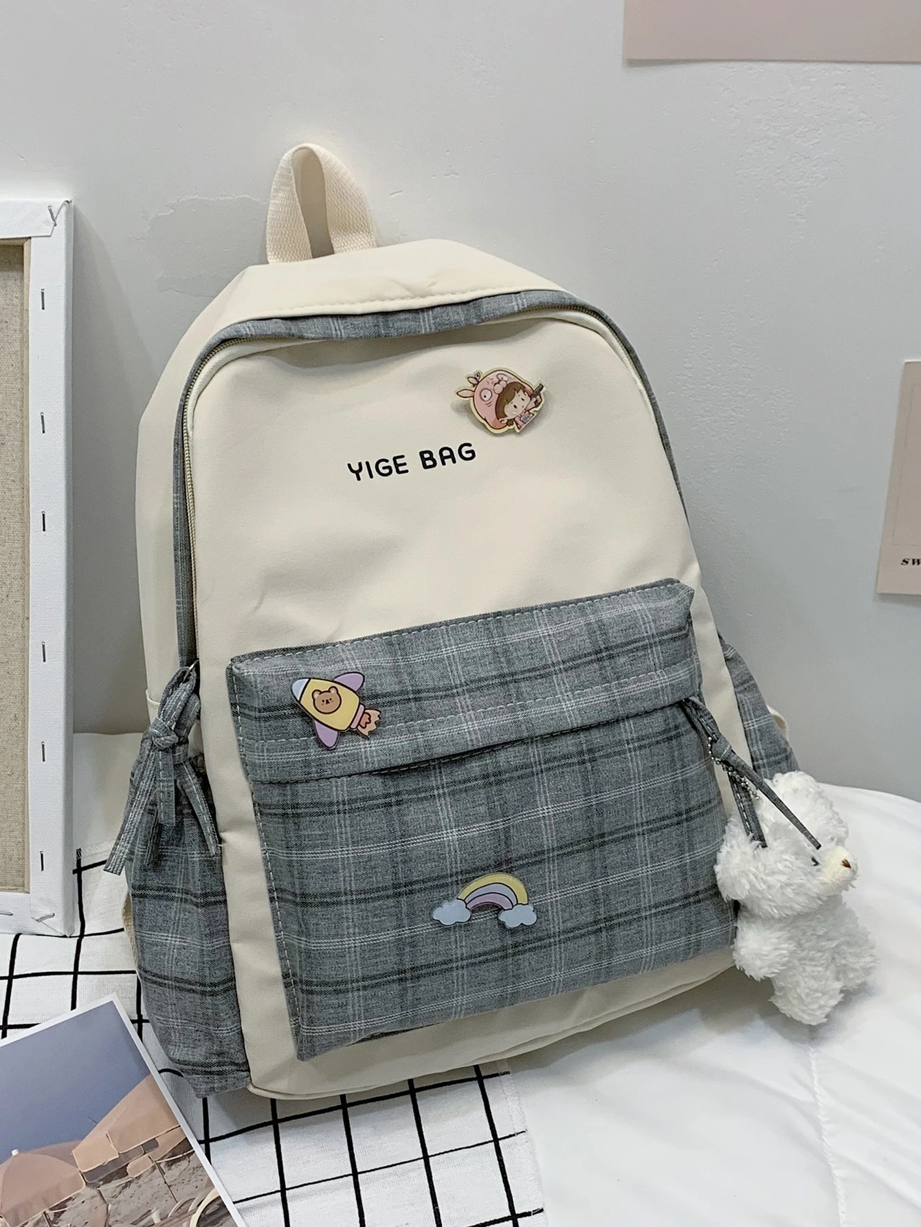 Zaino a quadri con tasca