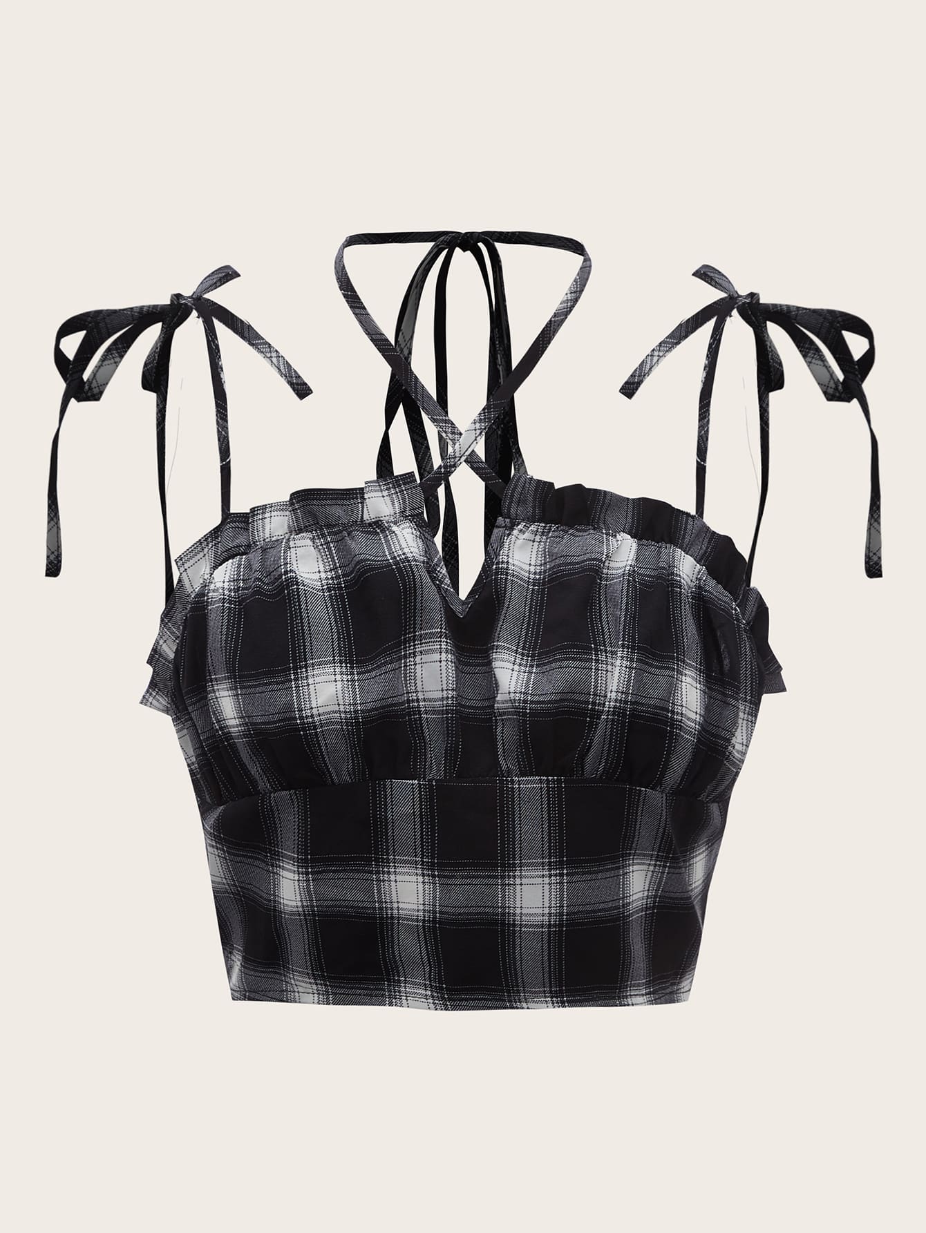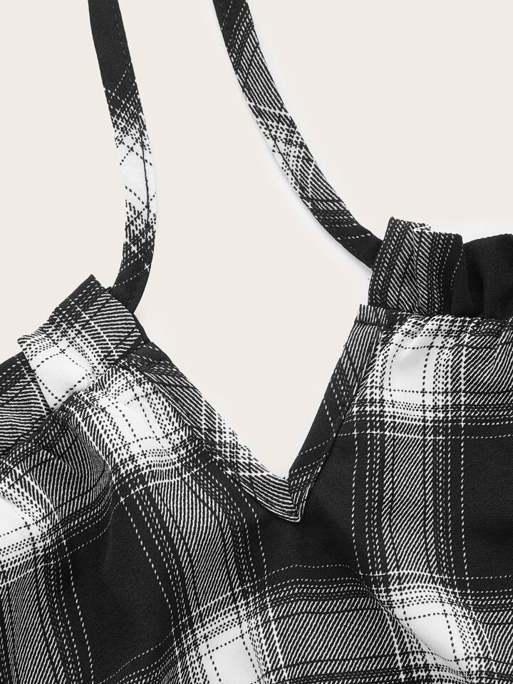 Top con bretelle sottile a quadri con spalle annodate