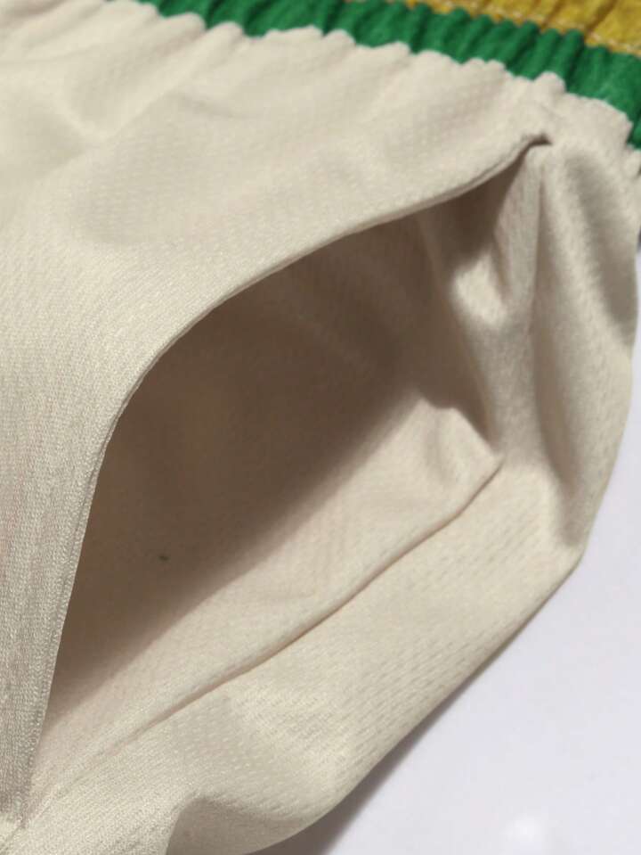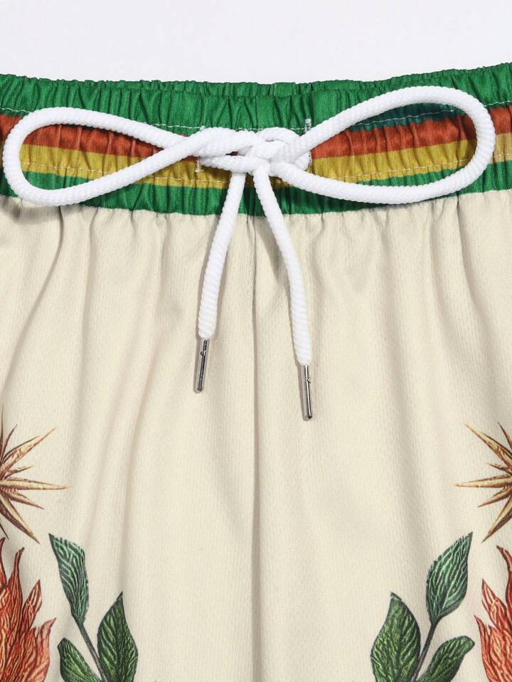 Shorts casual con pianta e stampa a righe, con tasche e coulisse in vita