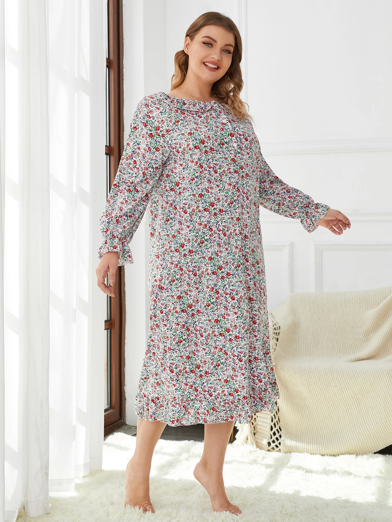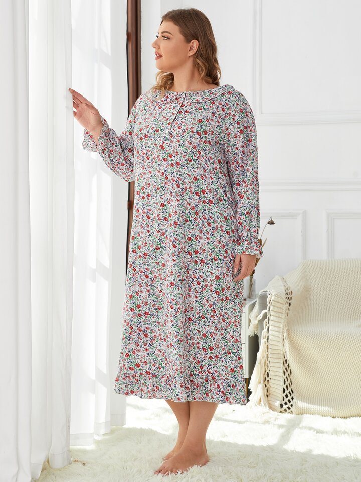 Pigiama di grandi dimensioni con colletto alla Peter Pan con motivo floreale completo