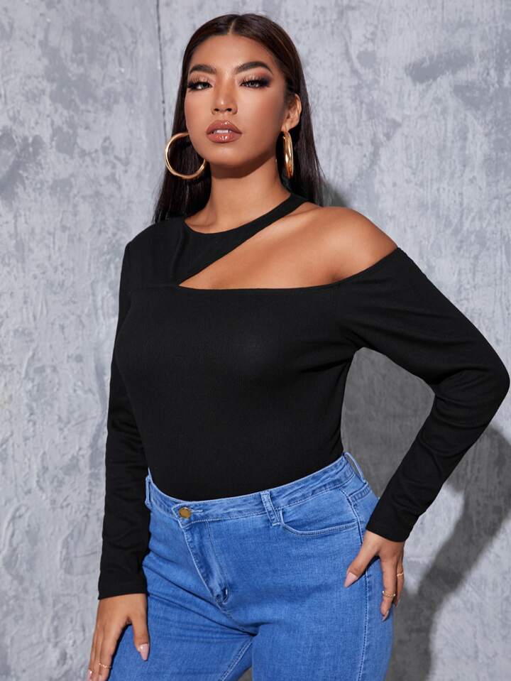 taglie forti Maglietta slim fit scollatura asimmetrica