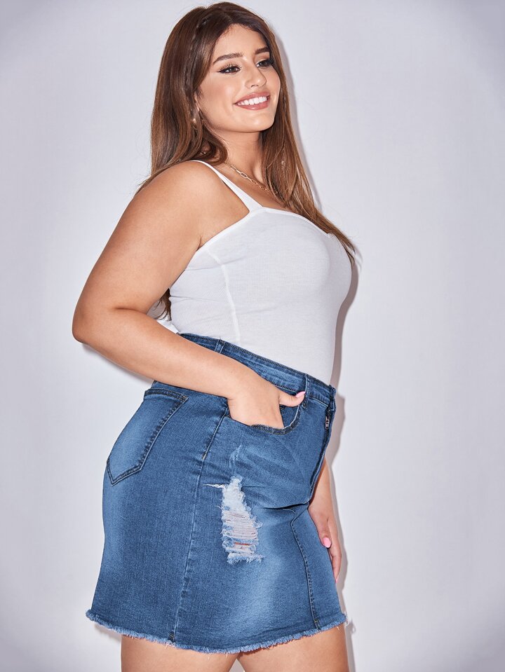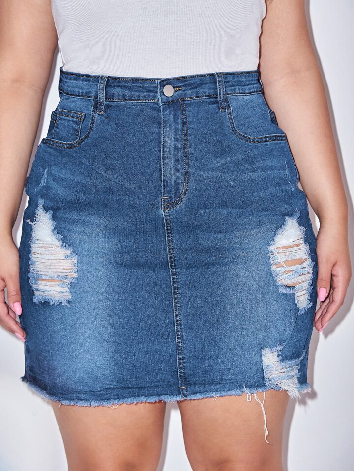 taglie forti Gonna in denim lavaggio con candeggina con strappati orlo grezzo