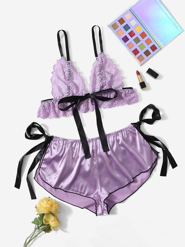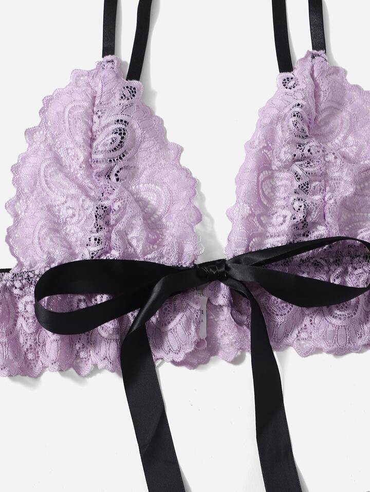 taglie forti Set lingerie con decorato fiocco pizzo raso