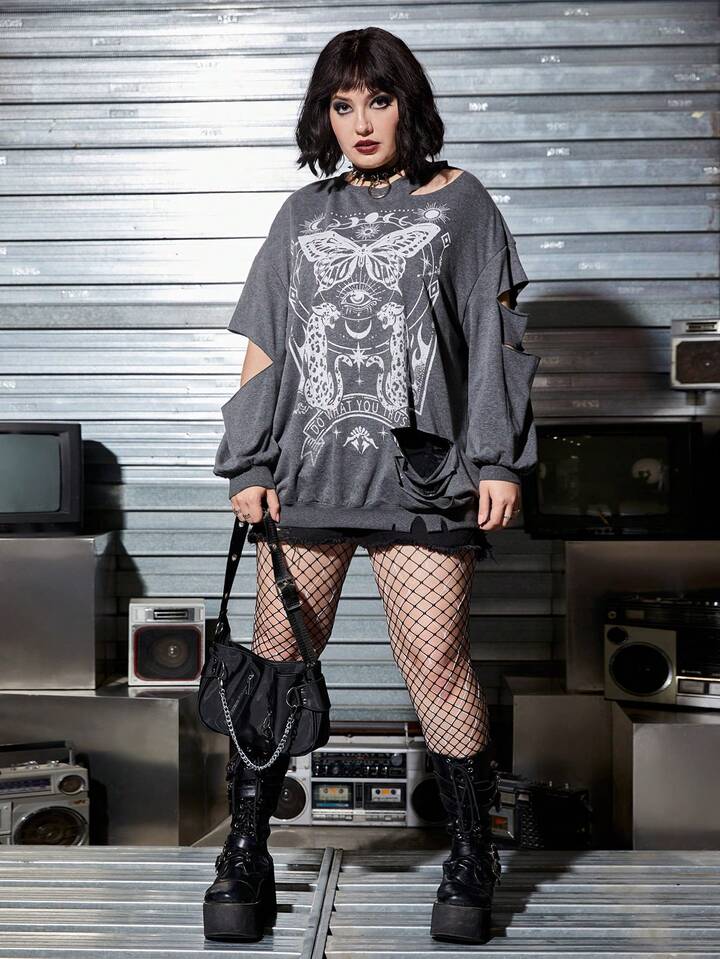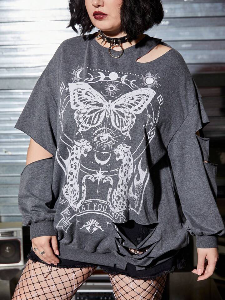 Taglie Forti Felpe farfalla & con stampa leopardo scavato spalle cadenti