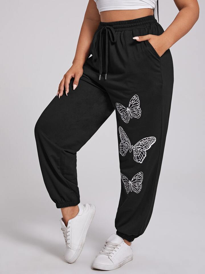 Pantaloni sportivi con coulisse in vita con stampa di farfalla