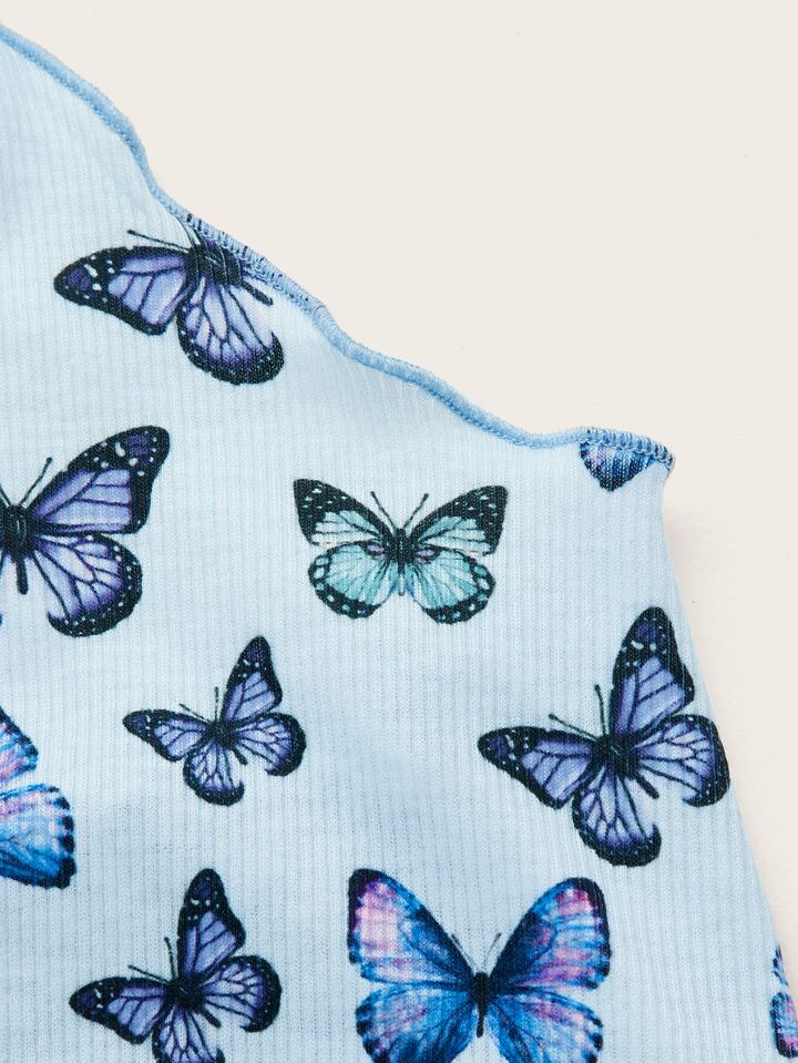 taglie forti Top halter con stampa farfalla orlo lattuga