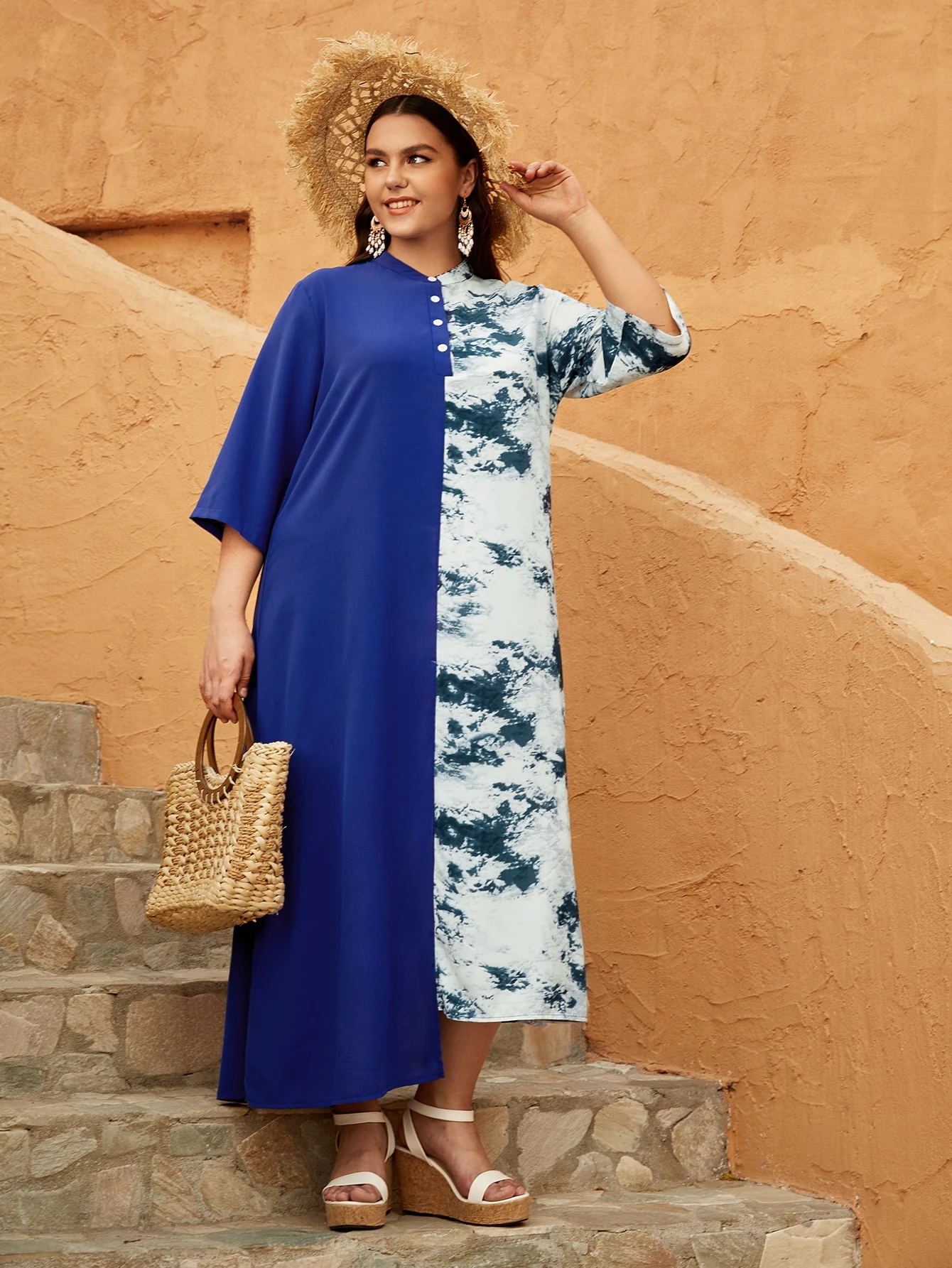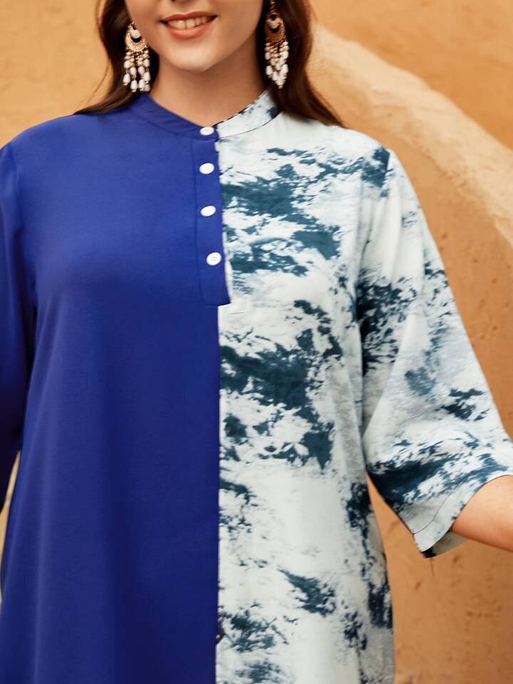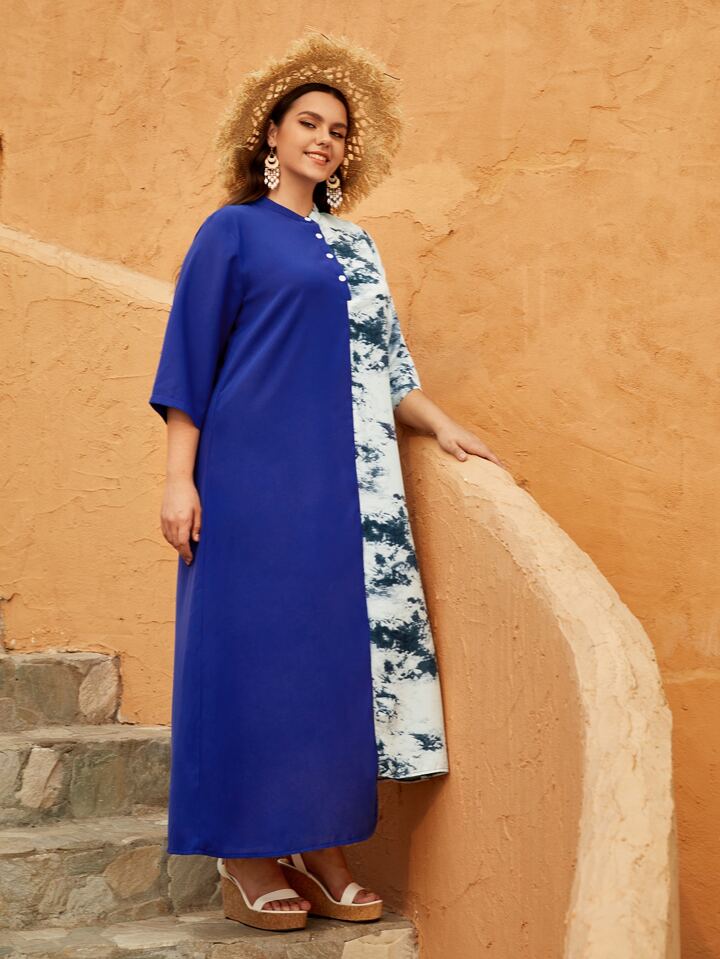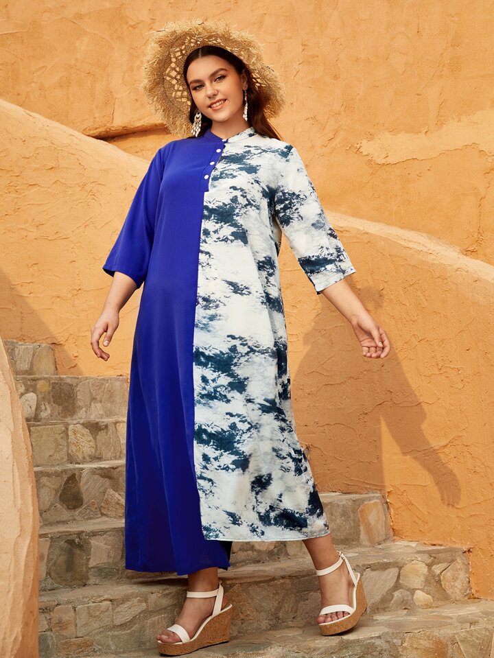 taglie forti Abiti con bottone frontale tie dye spliced