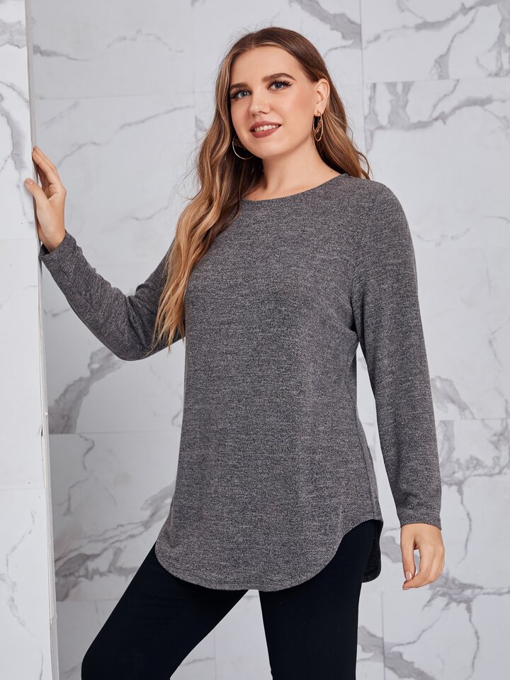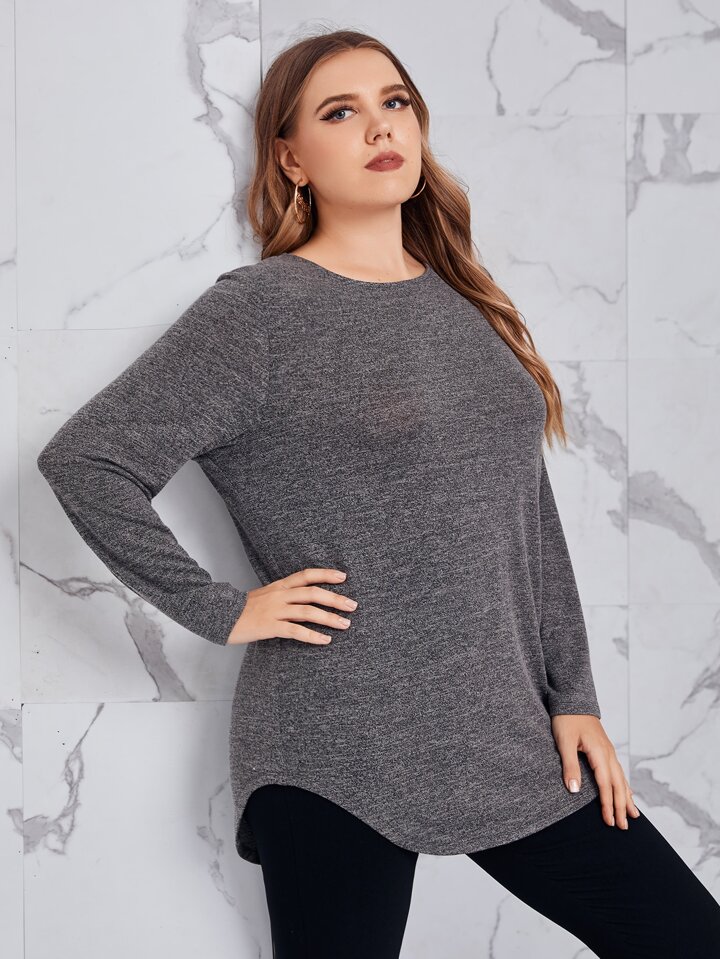 Magliette taglie forti Bottone frontale Colore unico Casual