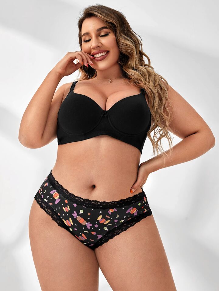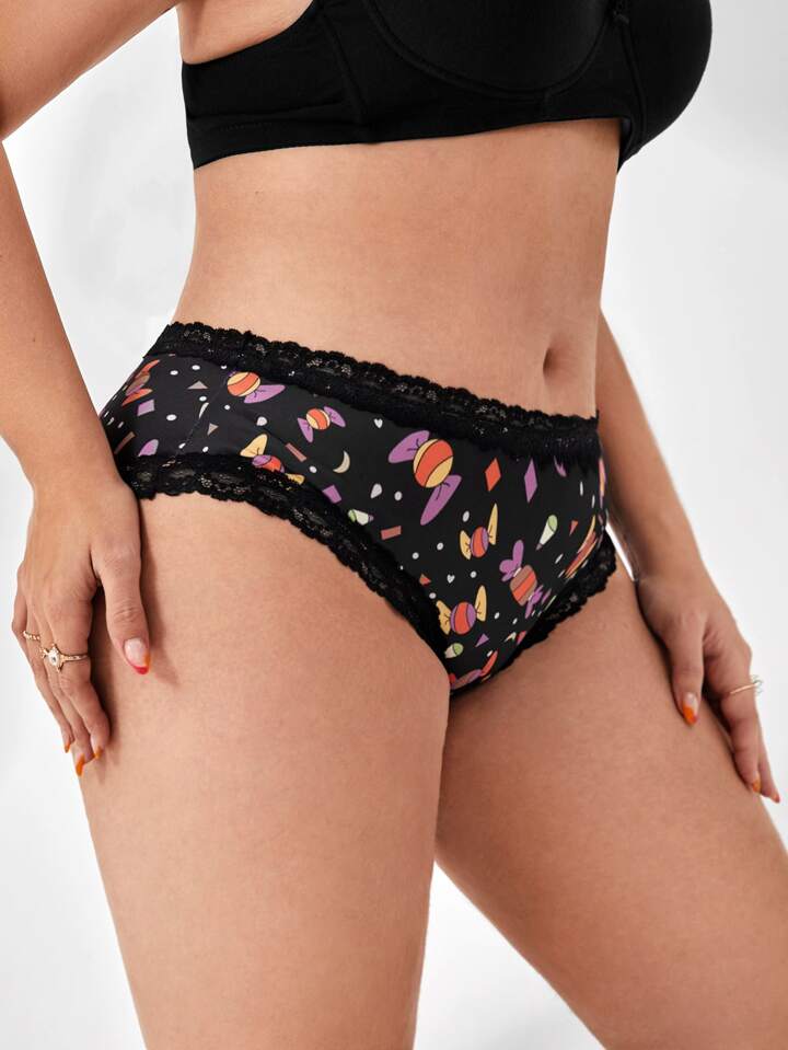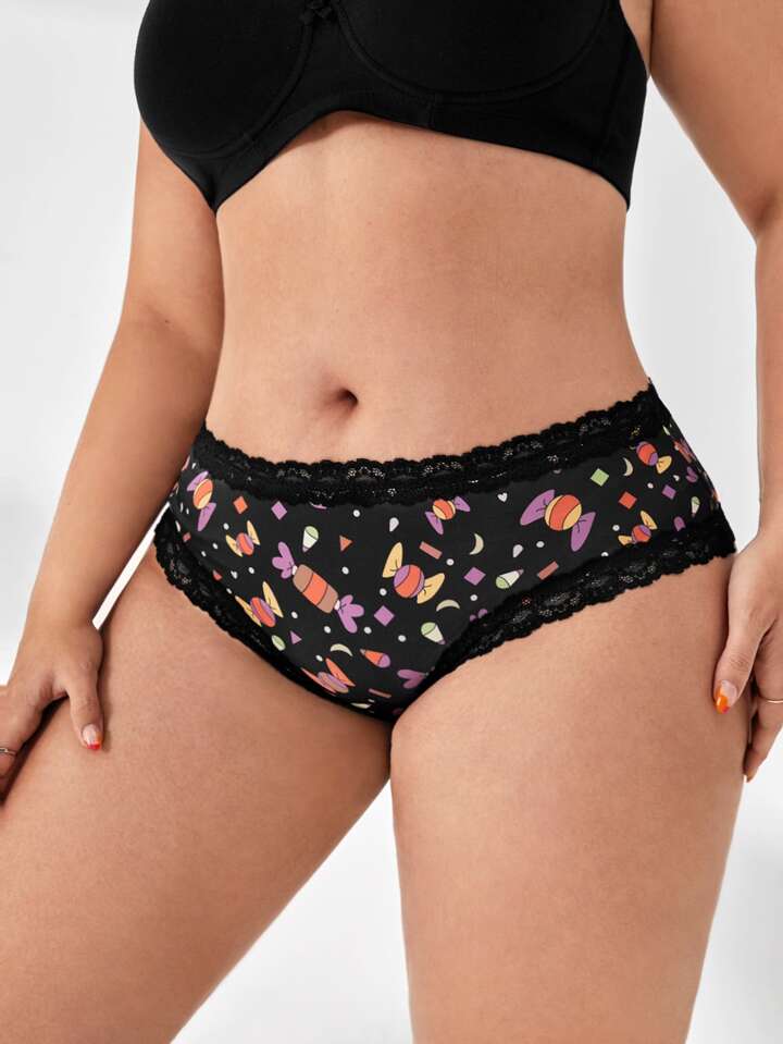 taglie forti Mutandine con stampa caramelle pizzo a contrasto