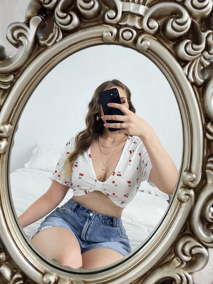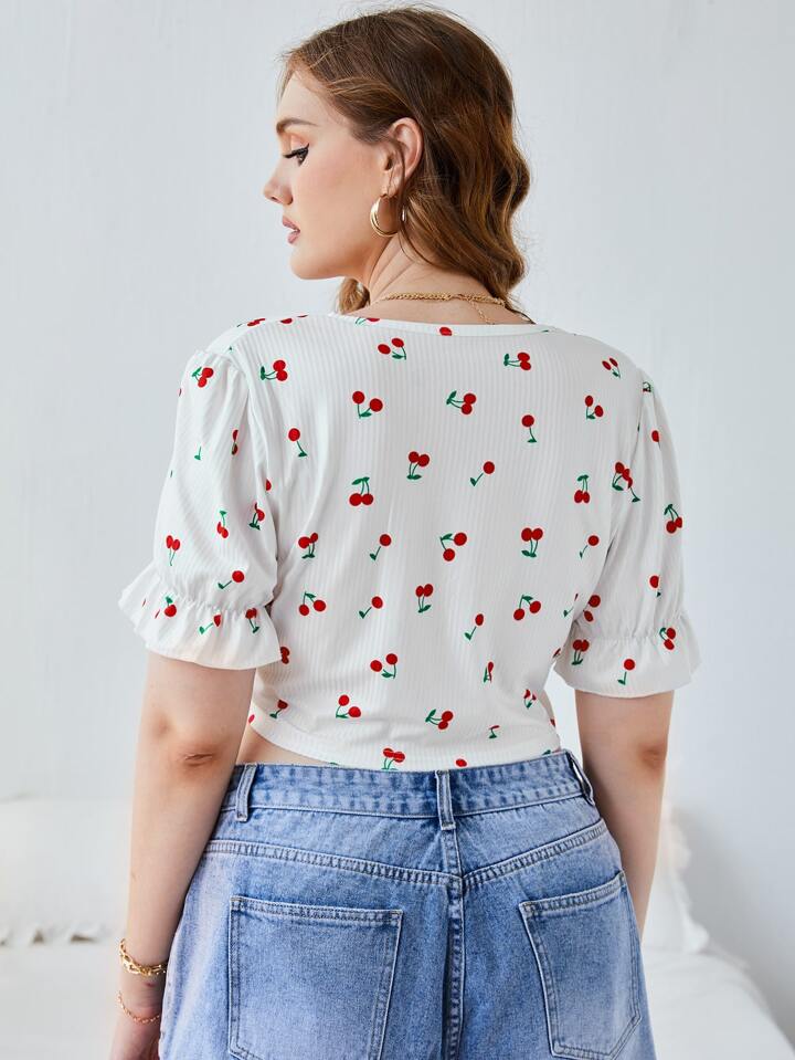 Magliette taglie forti A coste Frutta & verdura stampa dappertutto Sexy