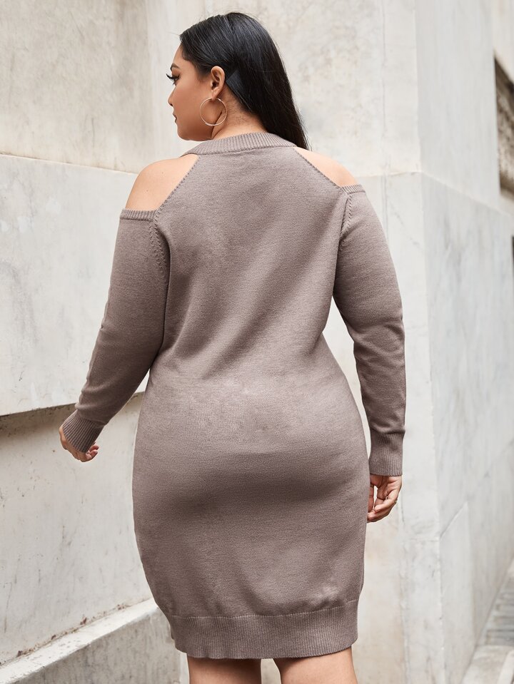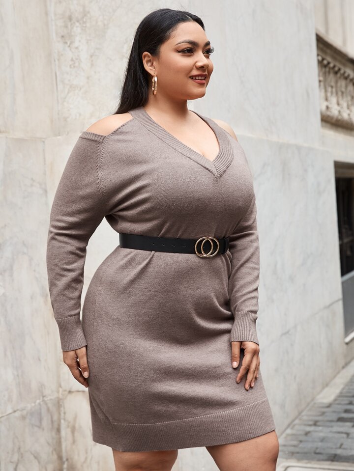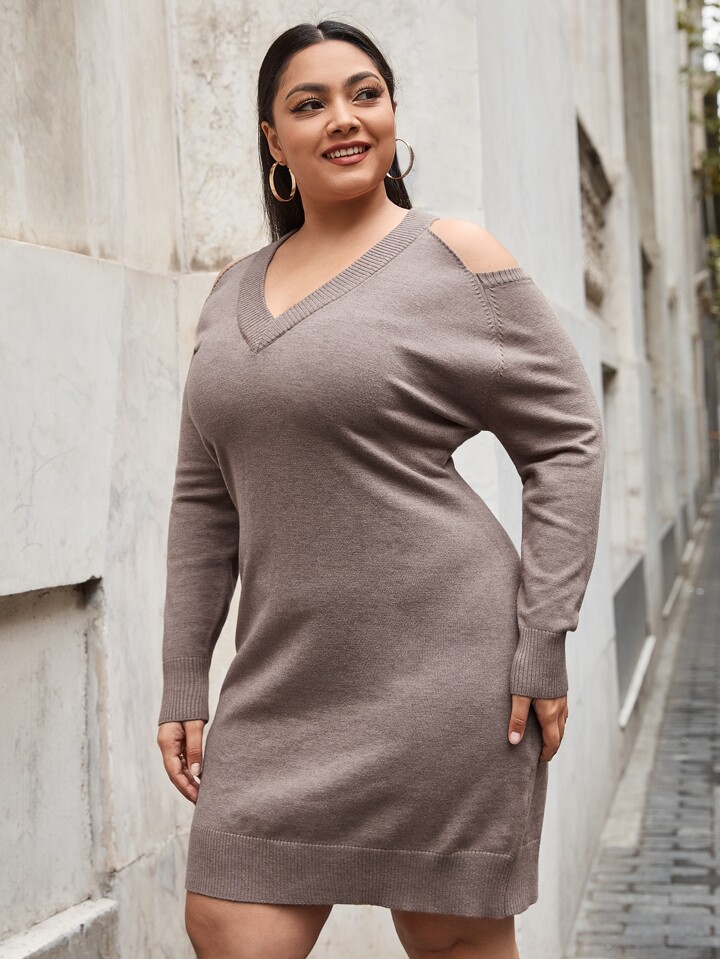 Abito maglione con spalle scoperte senza cintura taglie forti