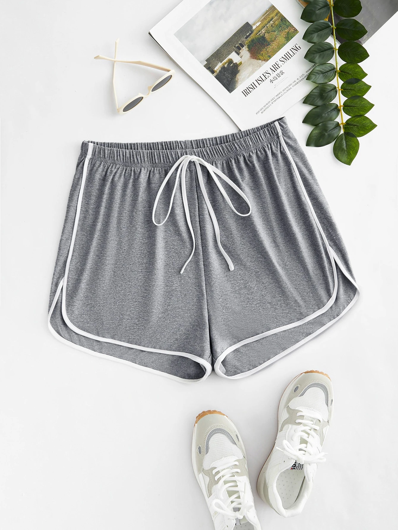 taglie forti shorts bordo a contrasto nodo frontale