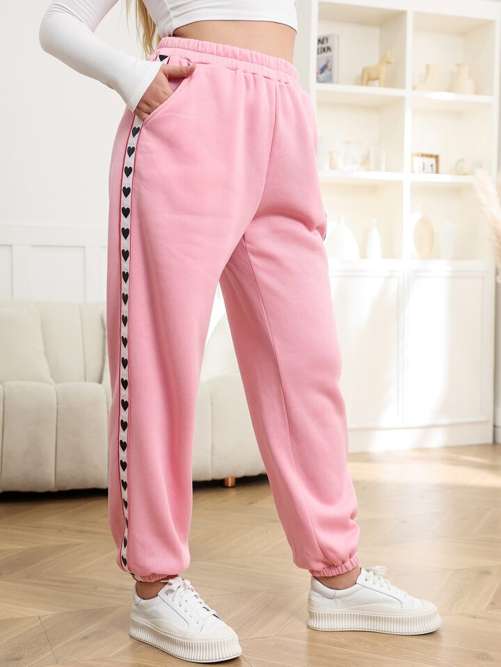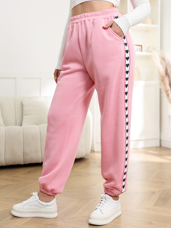 taglie forti Pantaloni sportivi contrasto cuore nastro tasche oblique