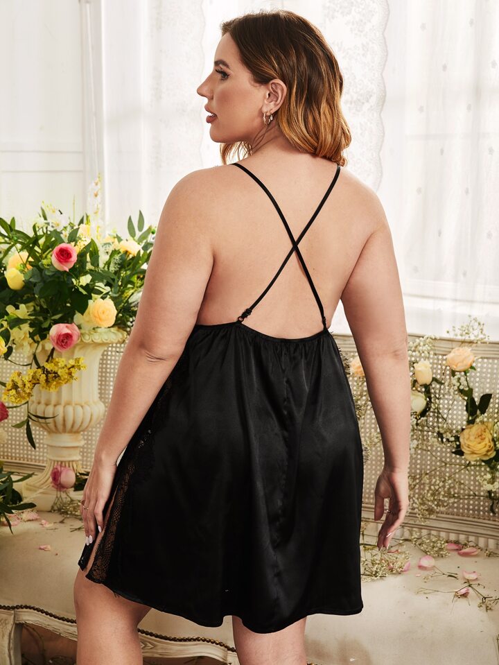 Camicia da notte schienale incrociato orlo di pizzo ciglia spacco laterale