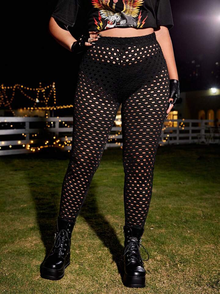 Leggings in rete tagliati avanti senza biancheria intima per l'estate, taglie forti