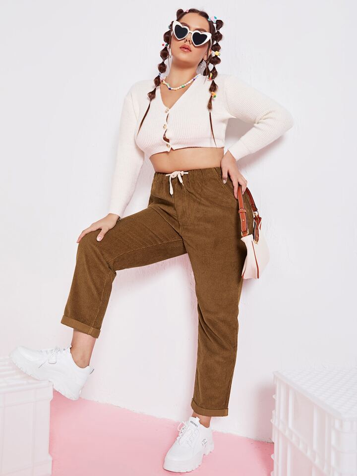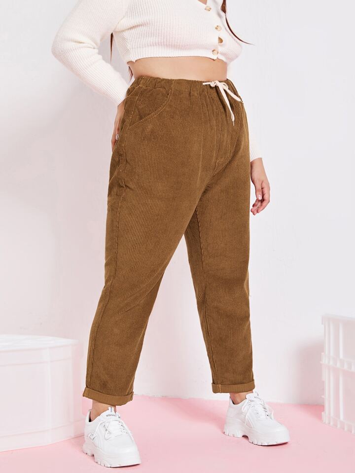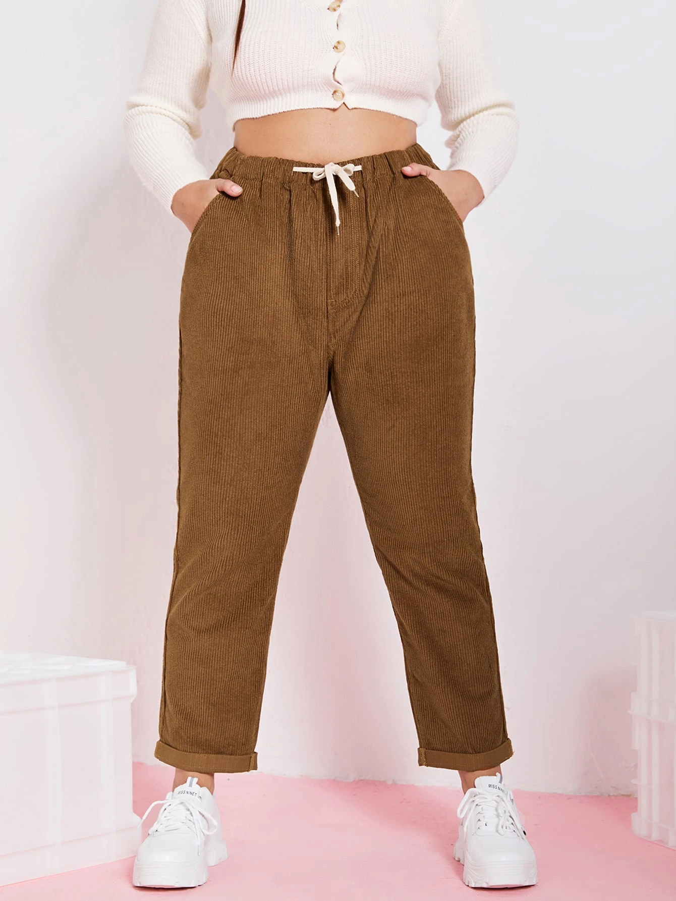 taglie forti Pantaloni con coulisse tasca laterale di velluto a coste