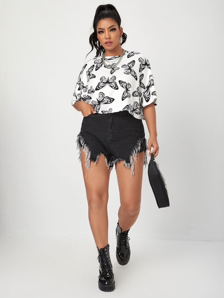 T-shirt estiva oversize con stampa a farfalle su tutto il capo