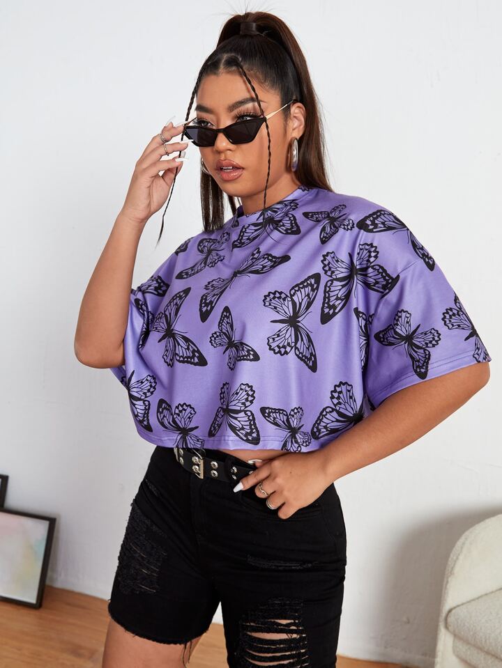 Maglietta spalle cadenti tutto con stampa farfalla