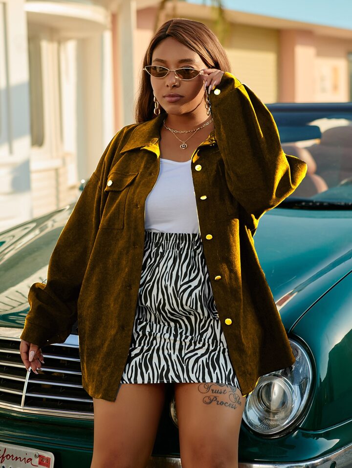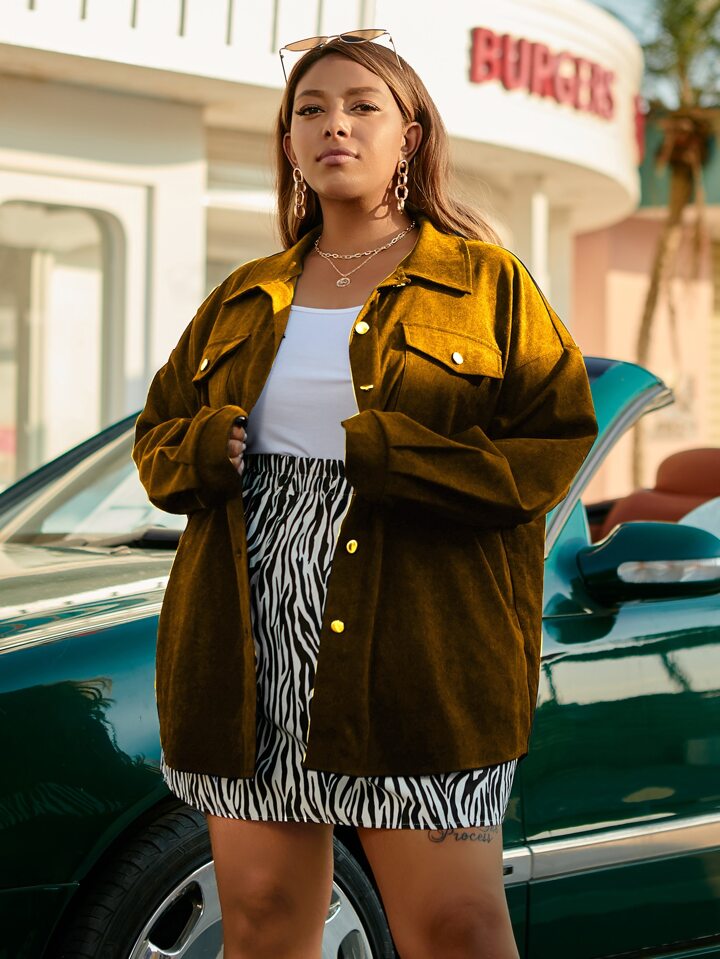 Giacca in velluto a coste e tasca e spalle cadenti taglie forti