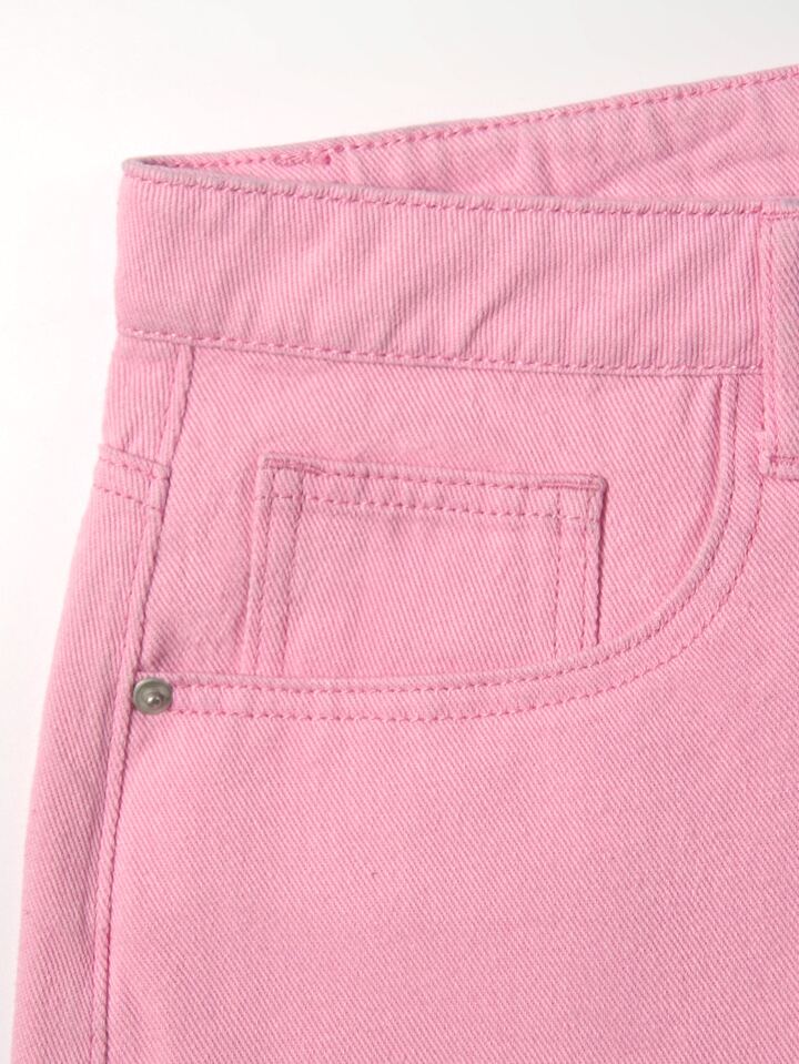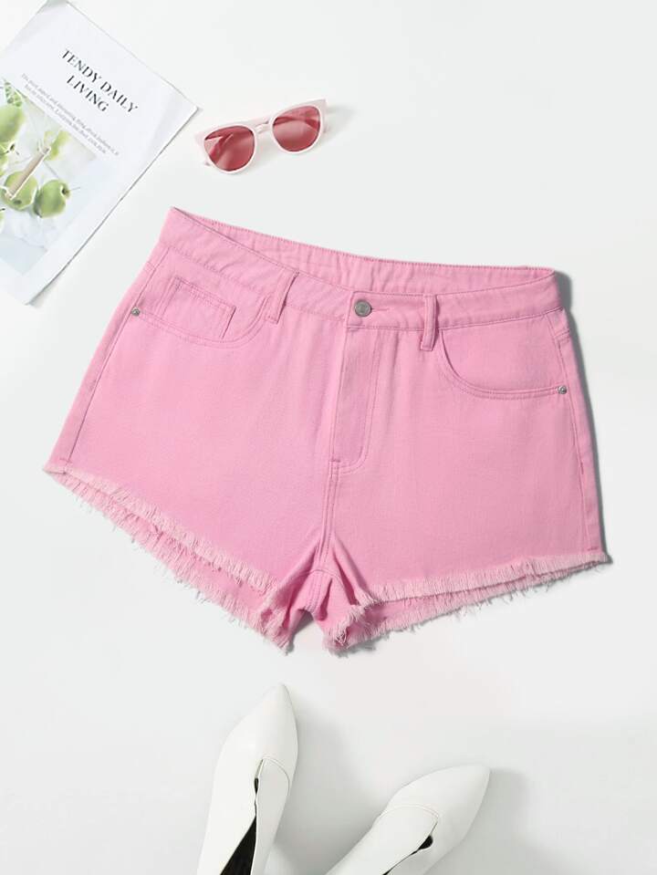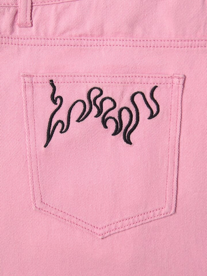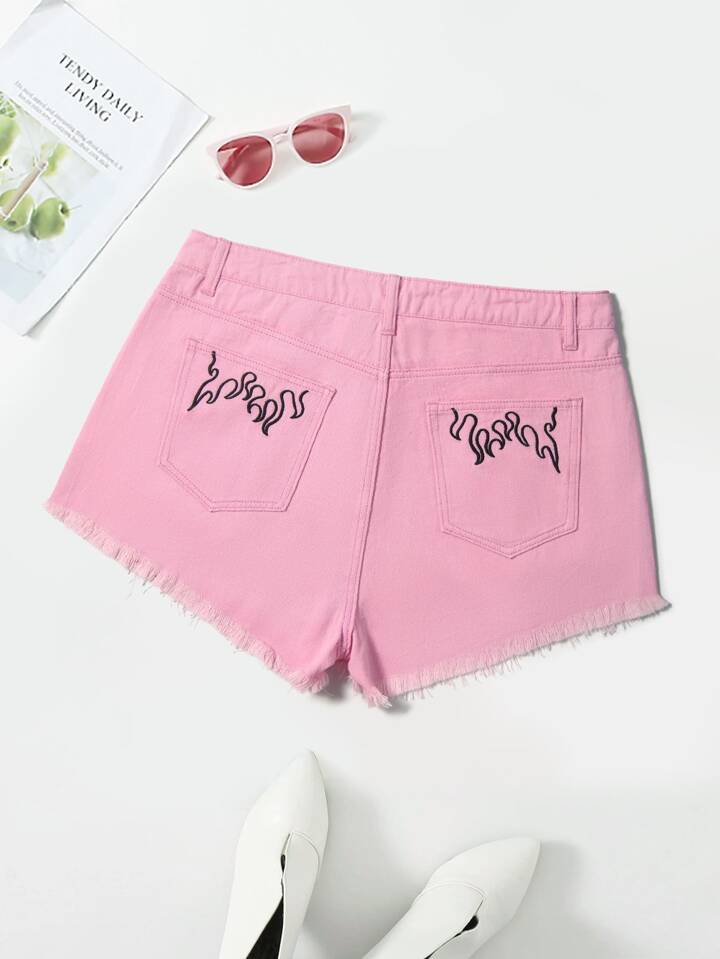 Shorts in denim con orlo sfrangiato con ricamo di fuoco