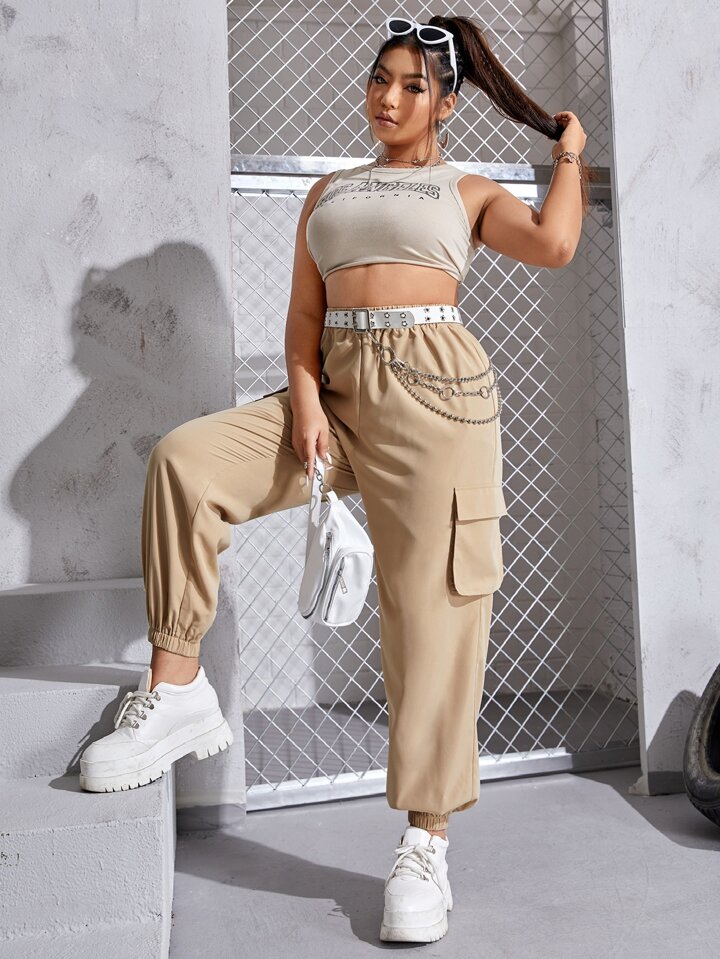 taglie forti Pantaloni cargo tasca con patta