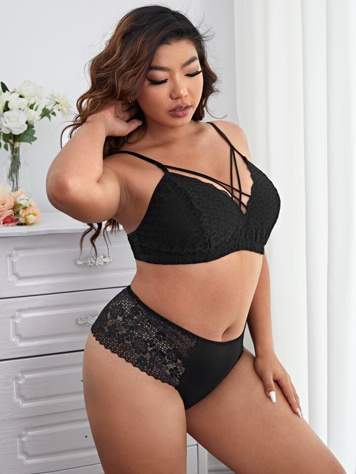 Biancheria intima coordinata con pizzo floreale in taglie oversize