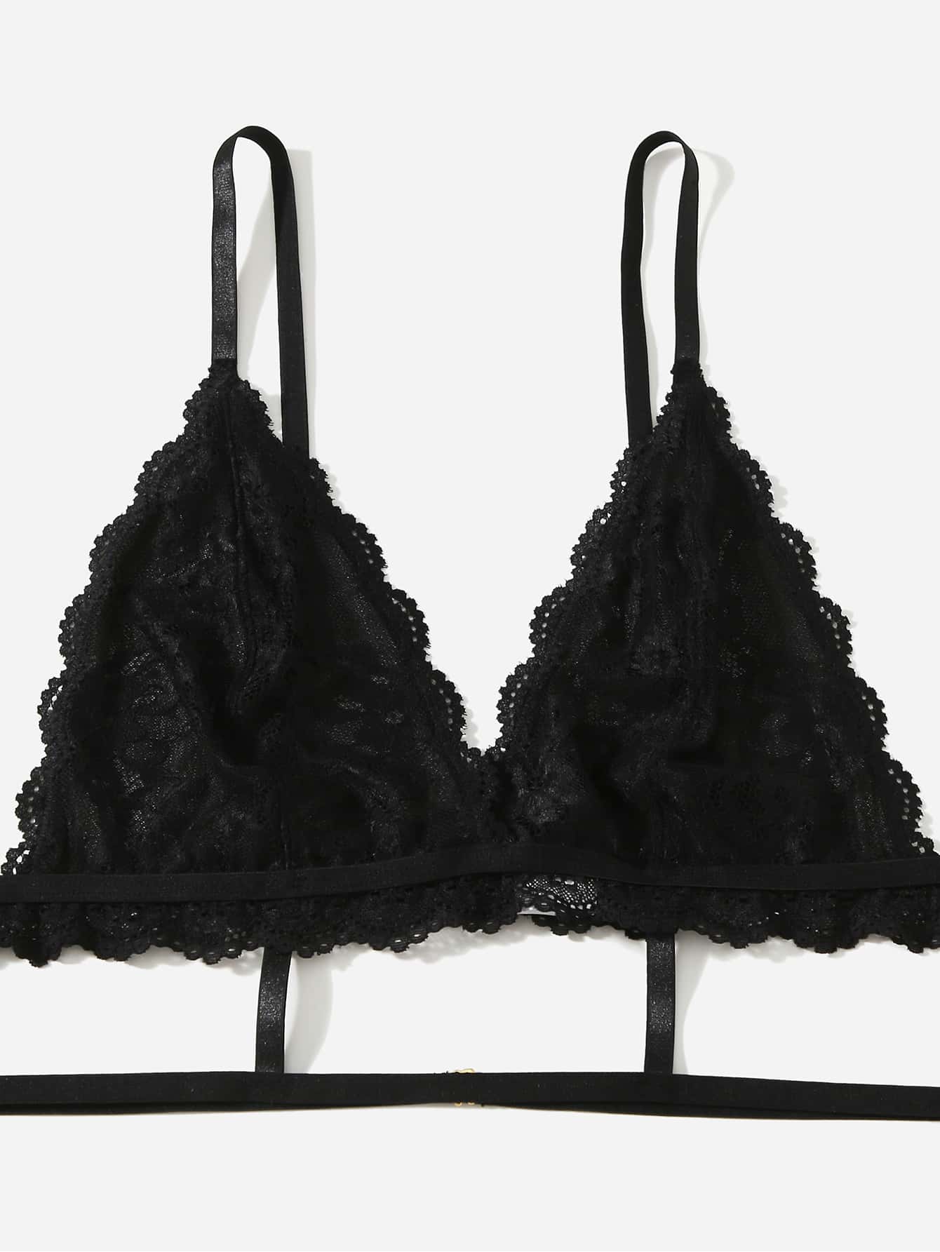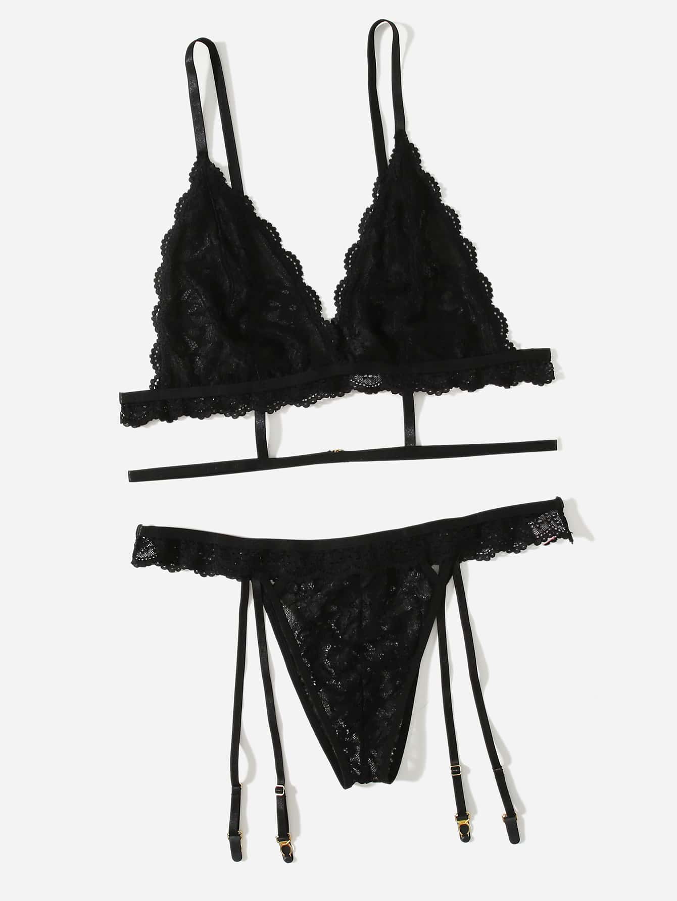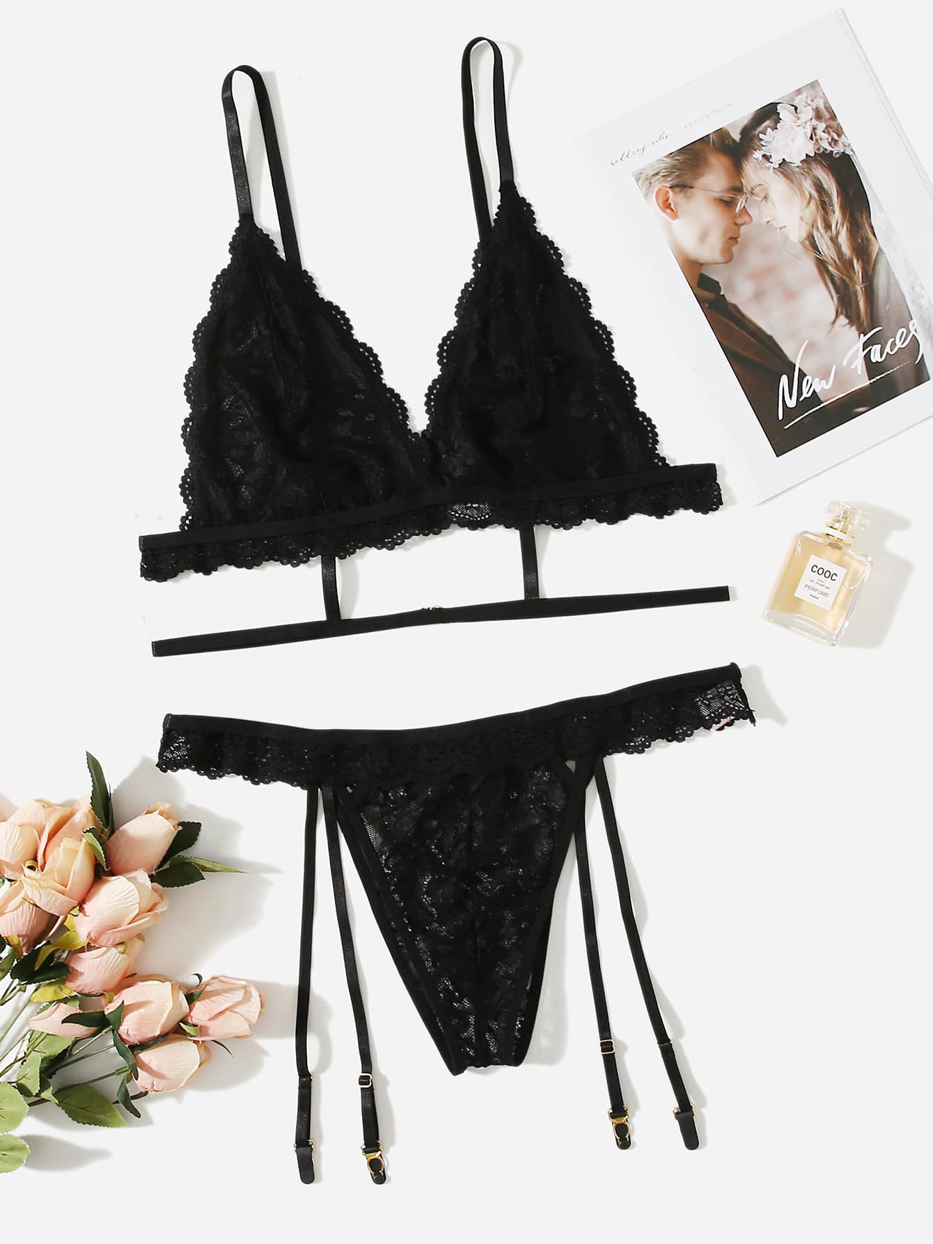 taglie forti Set lingerie pizzo floreale con orlo smerlato giarrettiera