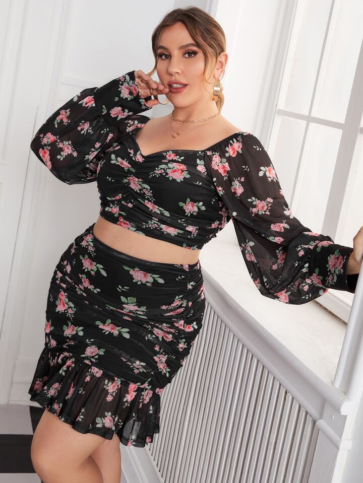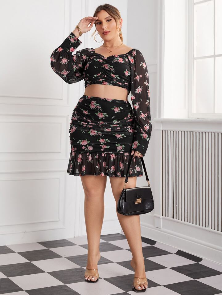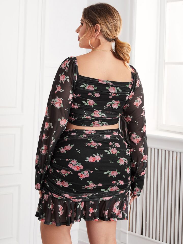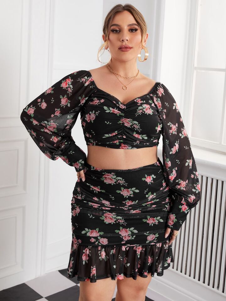 Set gonna e Top con stampa floreale bustino arricciato corto mesh