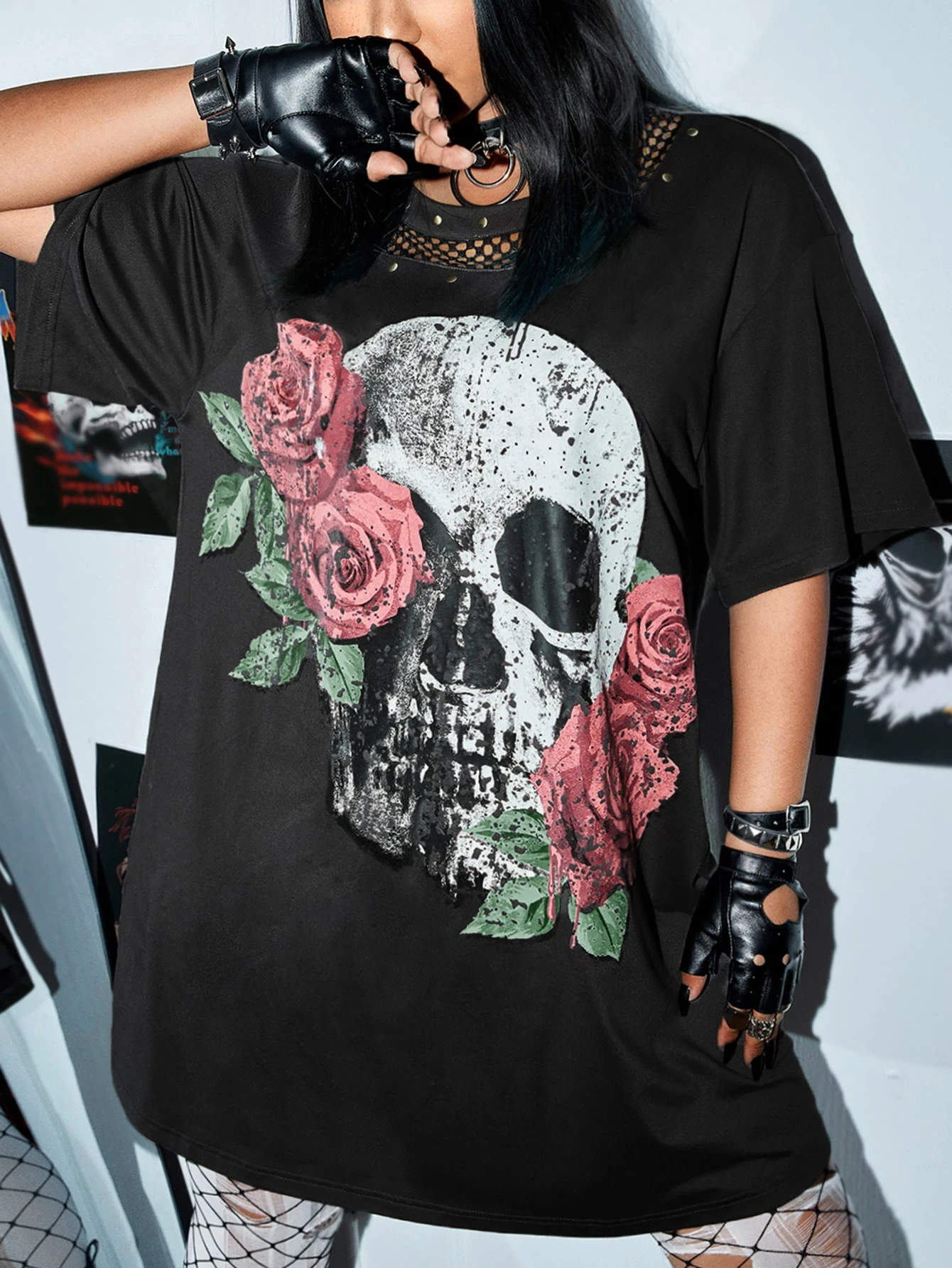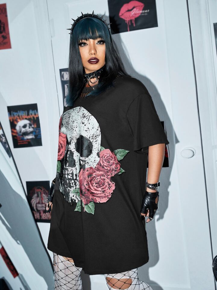 Taglie Forti Abiti floreale & con stampa teschi spalle cadenti