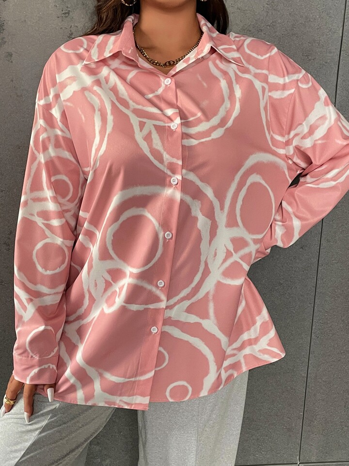 Taglie Forti Camicia con stampa geo spalle cadenti