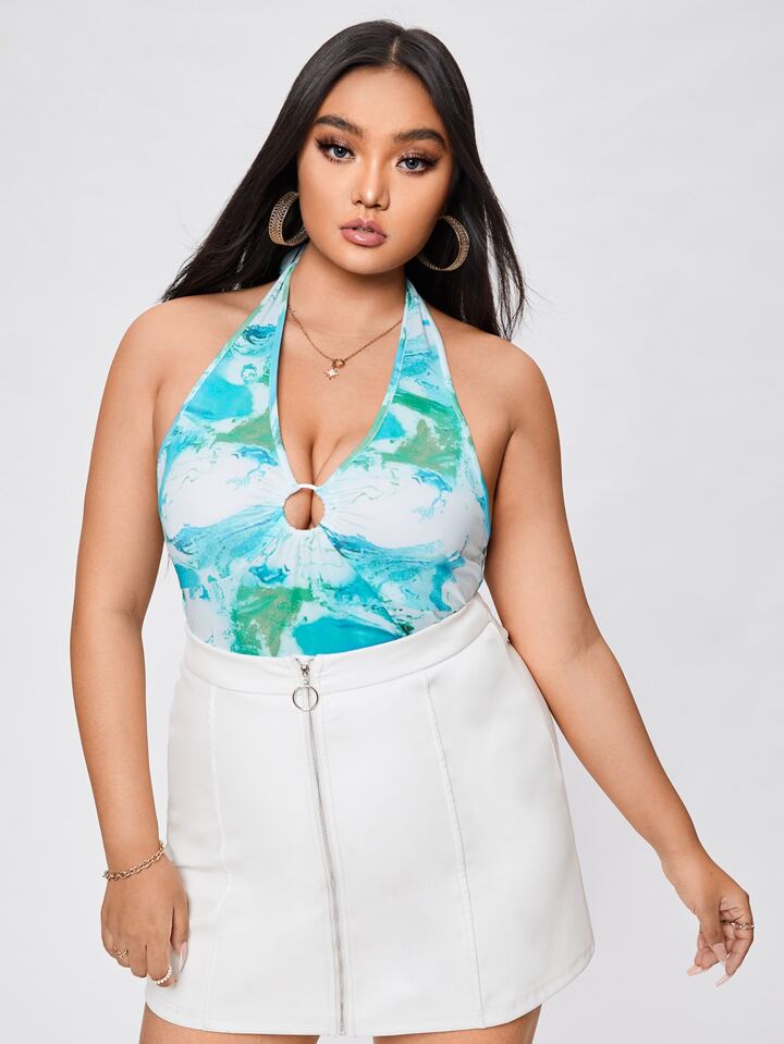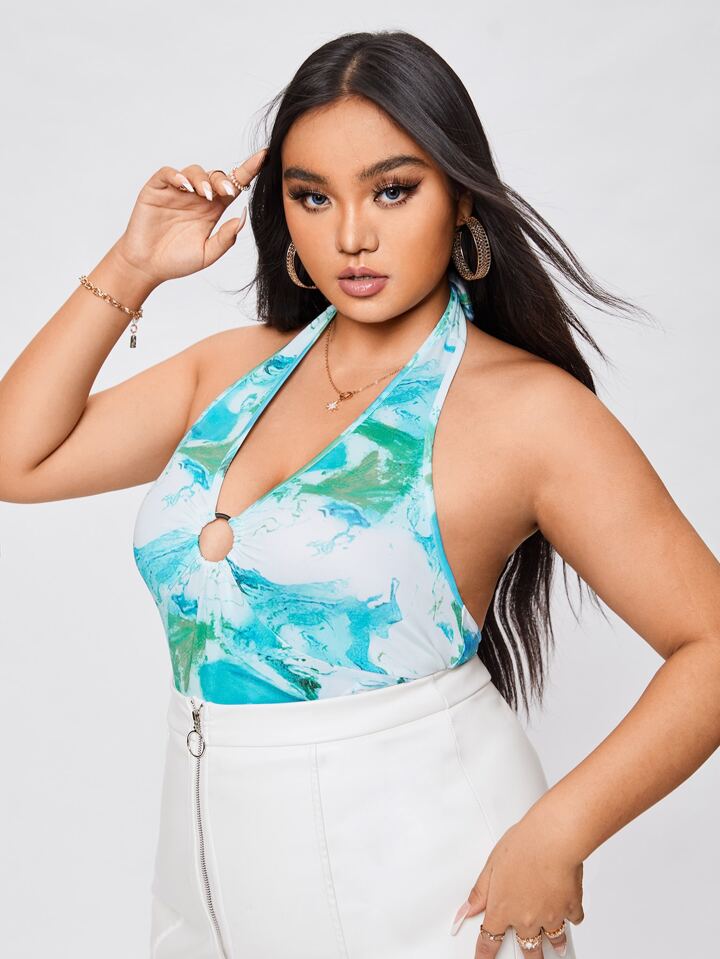 taglie forti Top halter corto con stampa grafica con anello capestro