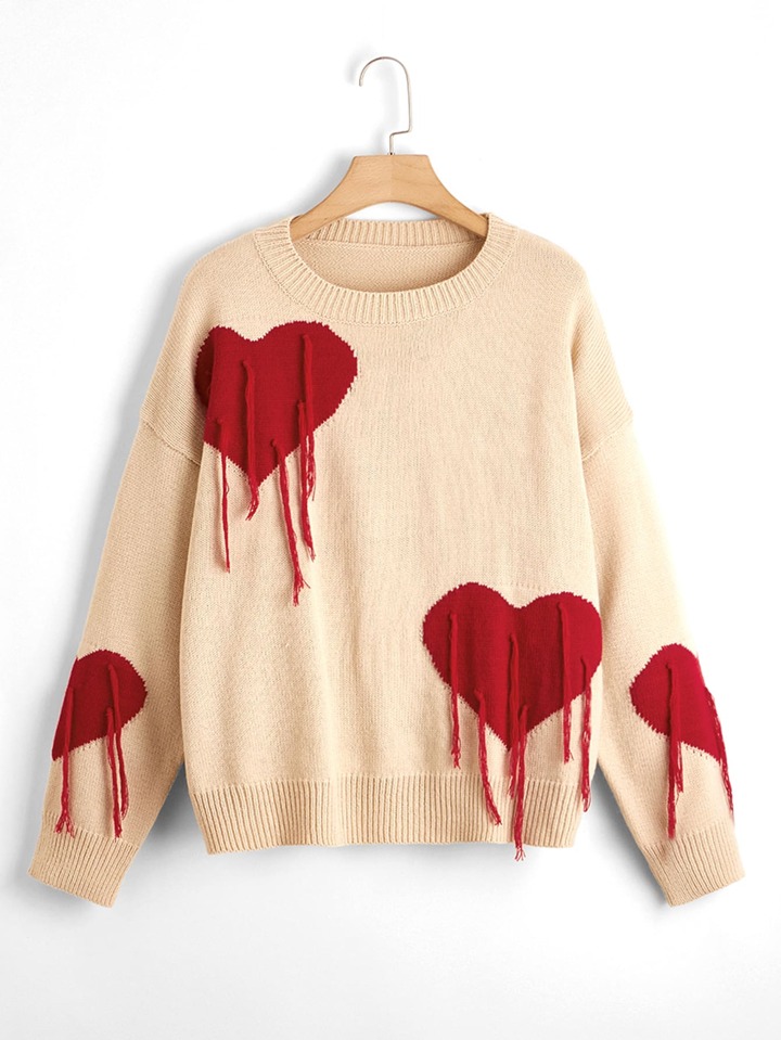 Maglione modello a cuore dettaglio frangia spalle cadenti