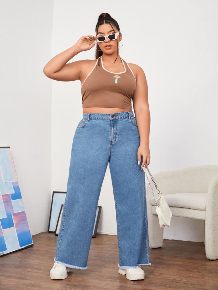 taglie forti Jeans vita alta orlo grezzo Pantaloni larghi