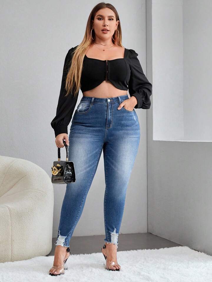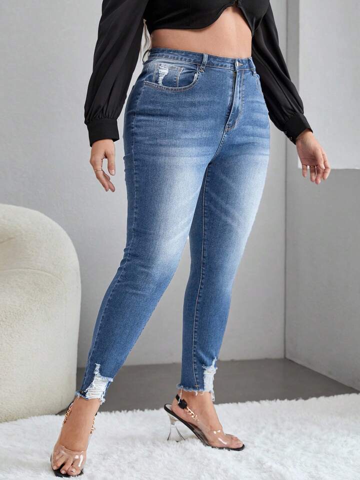 taglie forti Jeans skinny vita alta con strappati con rifinitura grezza