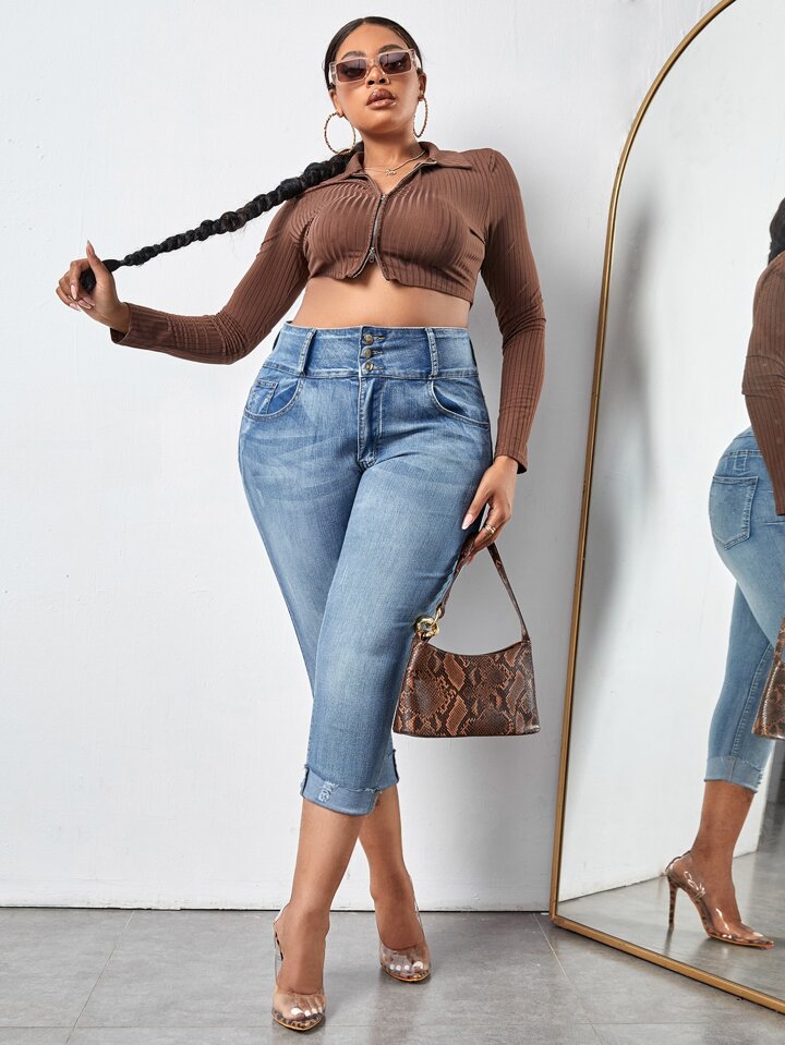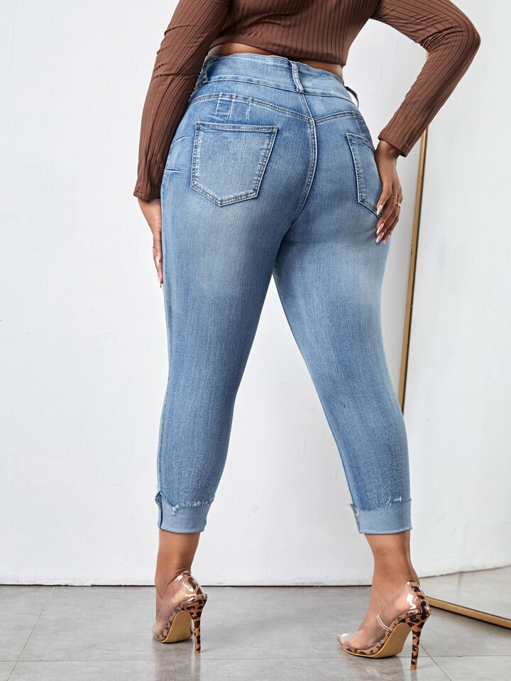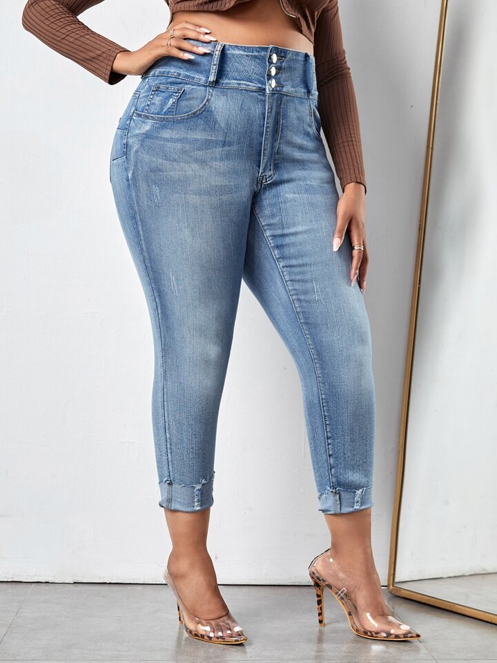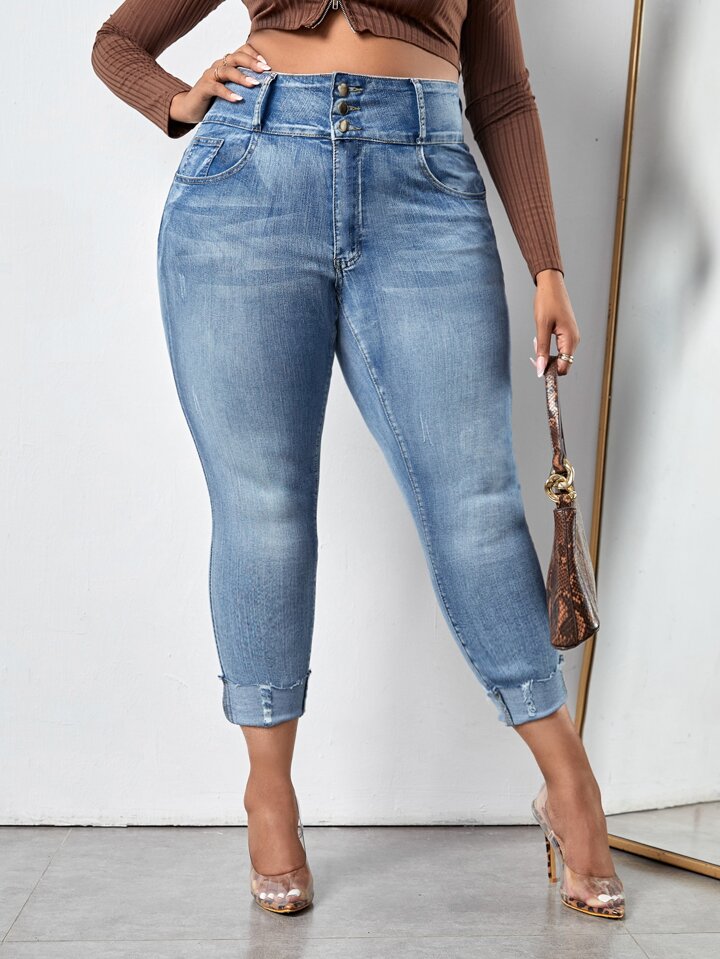 taglie forti Jeans skinny vita alta con orlo arrotolato
