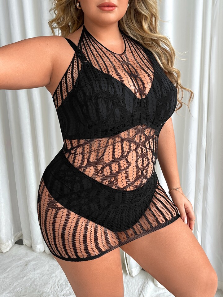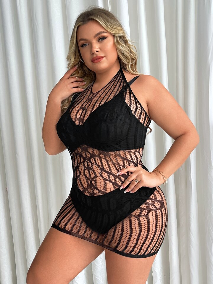 Taglie Forti Abito aderente scavato halter senza foderato