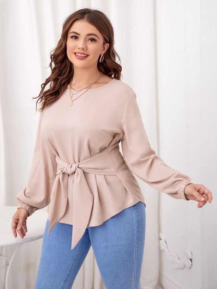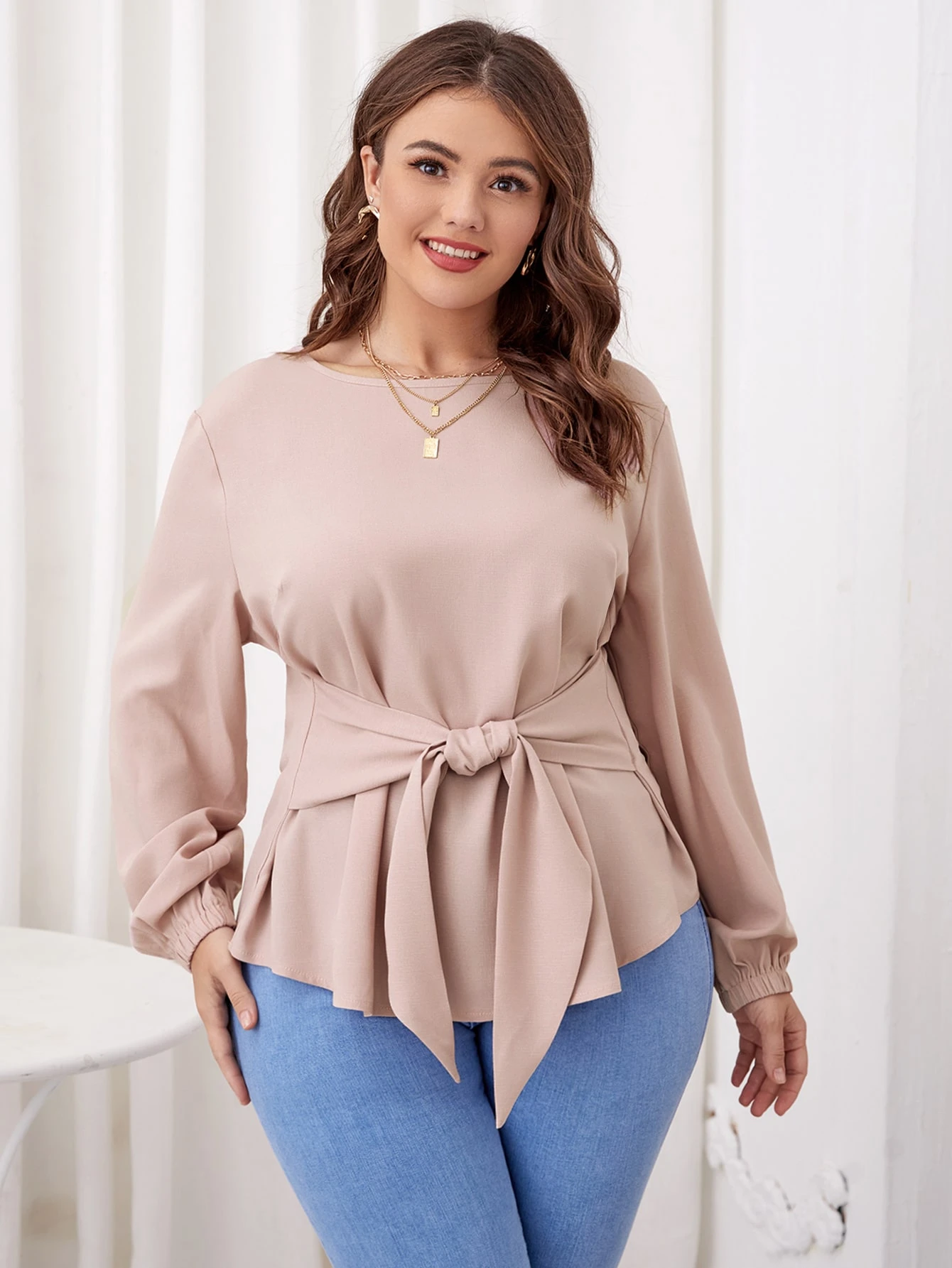 taglie forti Camicetta con nodo frontale manica a sbuffo