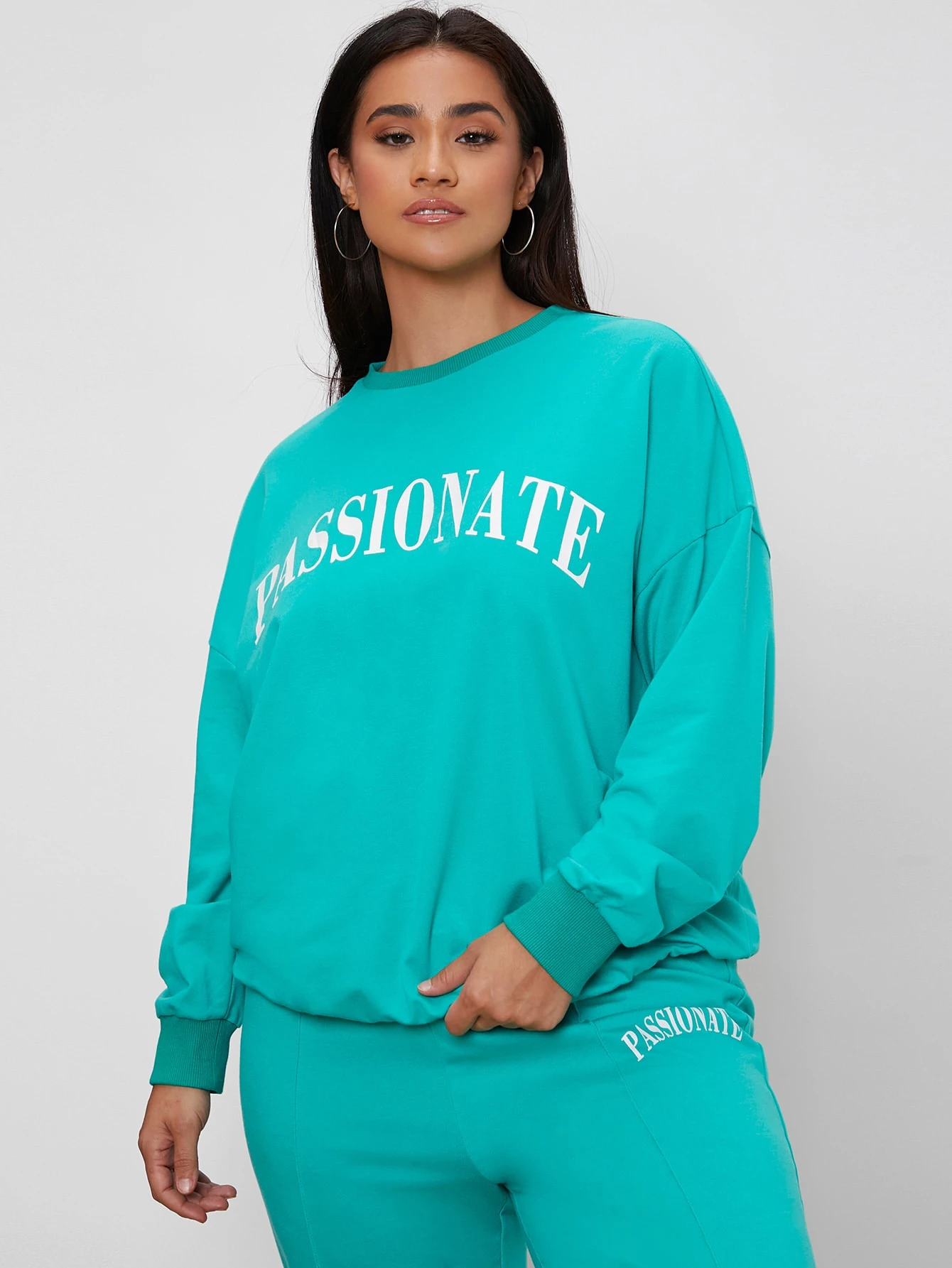 Pullover con spalle cadenti con grafica di lettere