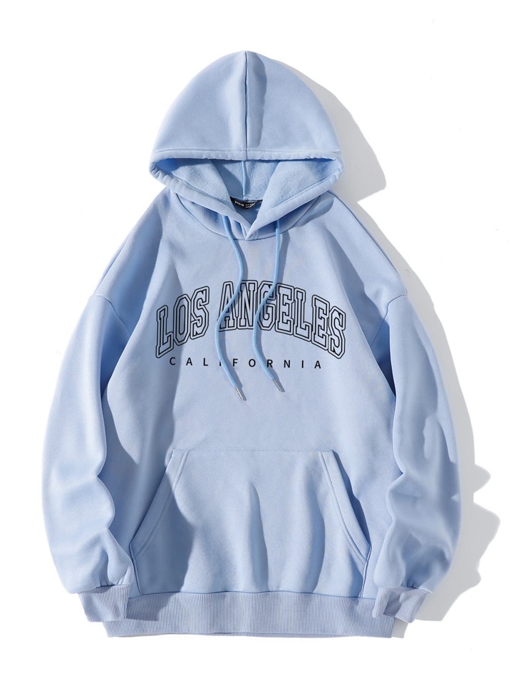 Felpa con cappuccio con lettera grafica con tasca foderata termico