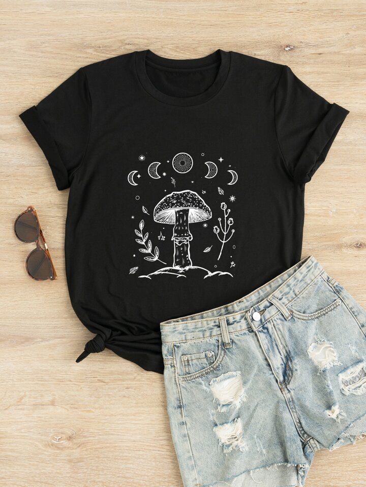 Maglietta funghi & stampa luna