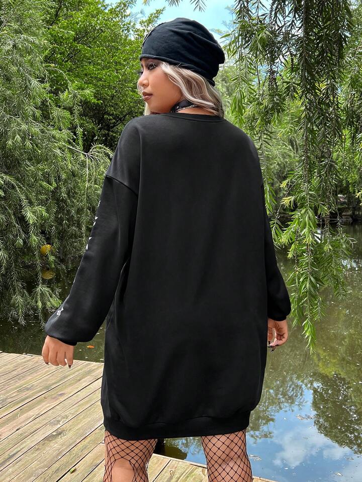 Taglie Forti Abito felpa funghi & con grafica slogan spalle cadenti