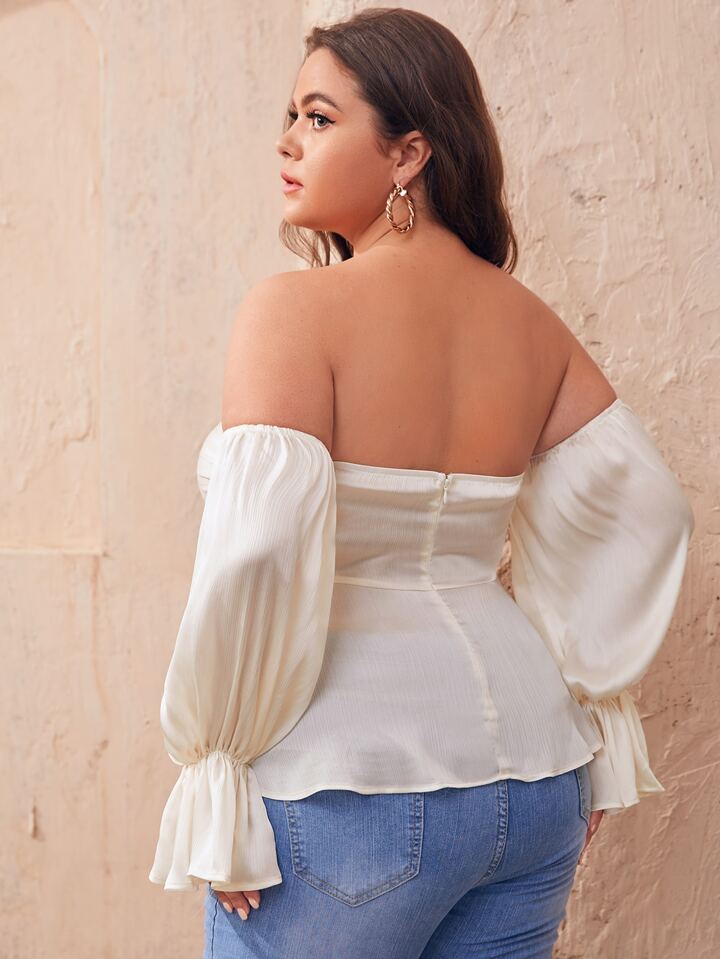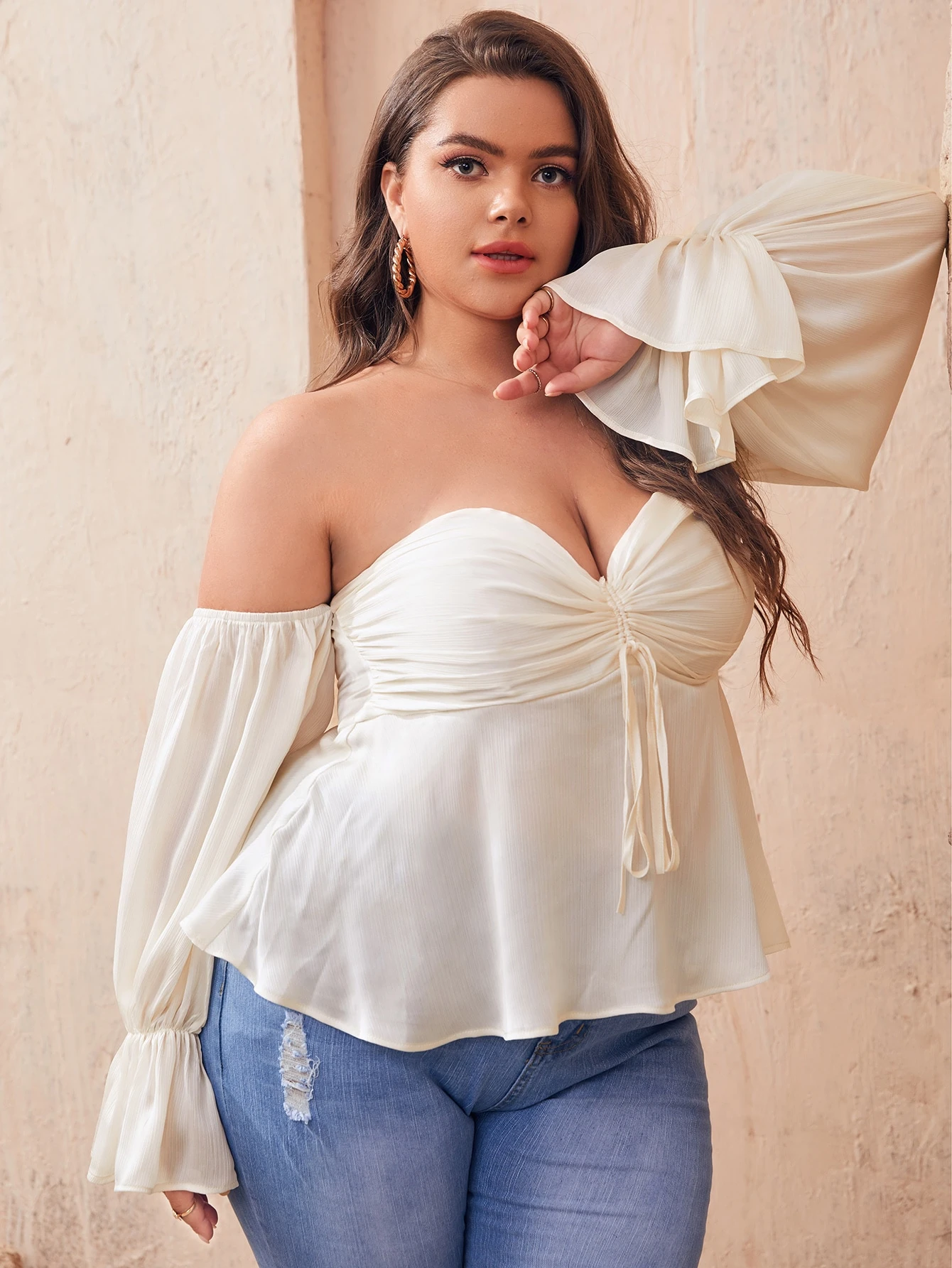 taglie forti Top in peplum con spalle scoperte manica svasata con coulisse bustino arricciato