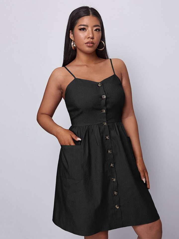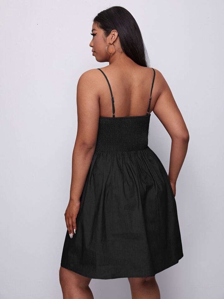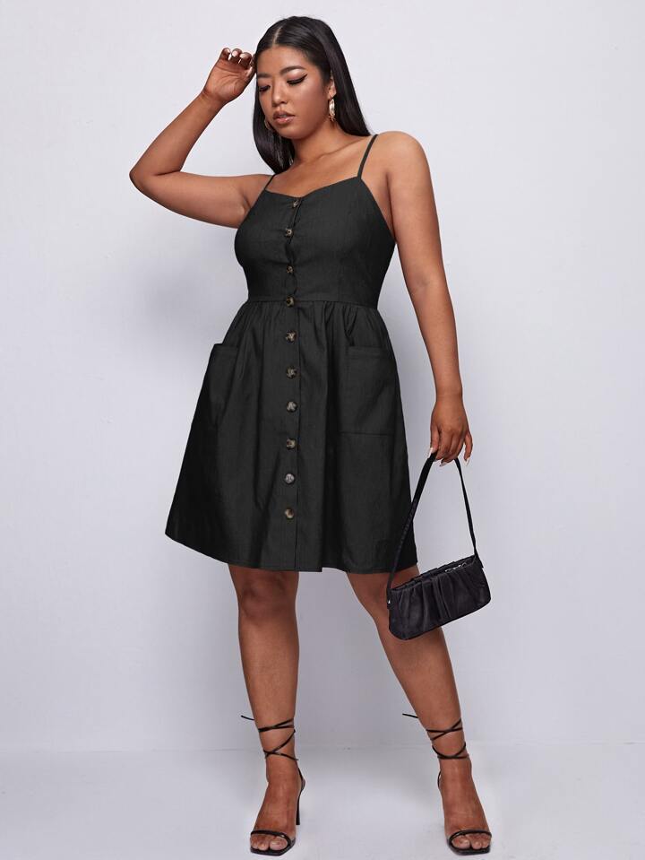 Abiti in denim grandi dimensioni Tasca arricciato Bottone frontale Colore unico Casual