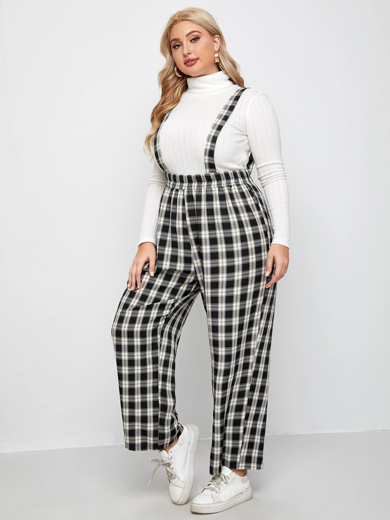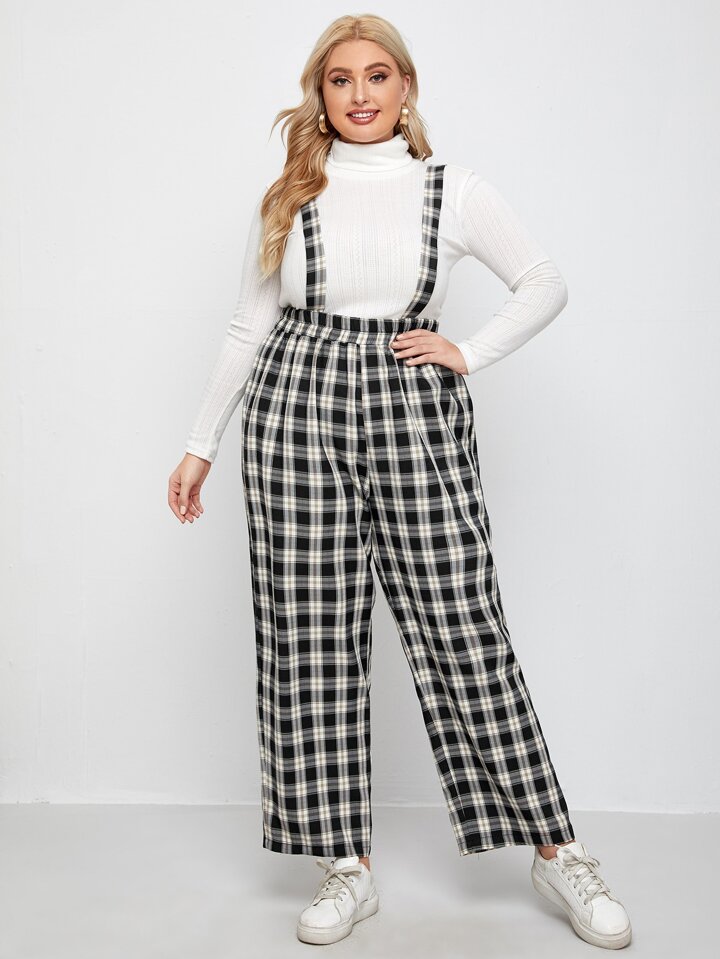 Tuta larga a quadri con bretelle